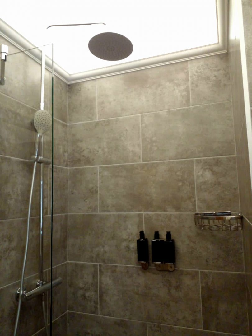 Из недостатков: в шкафу было мало вешалок, так нужно было разместить ещё и верхнюю одежду, помимо основной. Не хватает хотя бы одного стула в номере, есть только банкетка в наличии, чтобы удобно было принимать пищу. В ванной комнате работал только один большой основной душ сверху. А вторая лейка, которая более удобная, чтобы снять со стены и отрегулировать подачу воды, вообще не работала. Хорошо хоть банные шапочки были предложены. А душевая кабинка была закрыта только наполовину. И вся вода выливалась на пол до самой двери ванной комнаты. Так что пол был весь мокрой довольно продолжительное время. Поэтому лучше всегда брать с