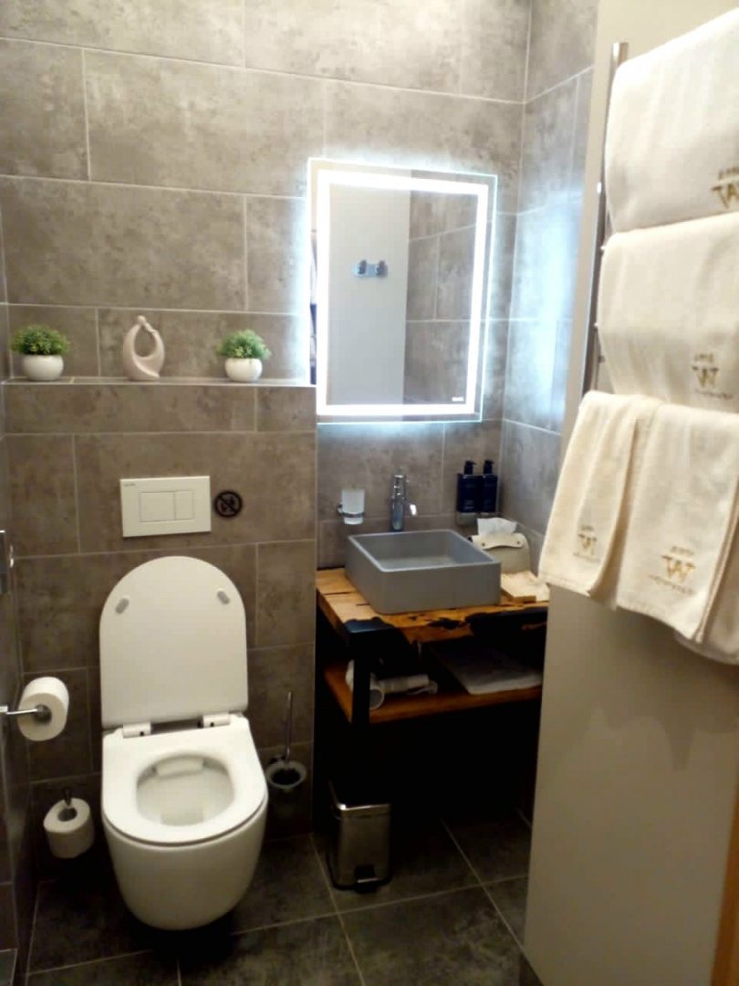 А в ванной комнате полный набор моющих средств: полотенца, шапочки для душа, зубные наборы. Очень удобная ванная комната.