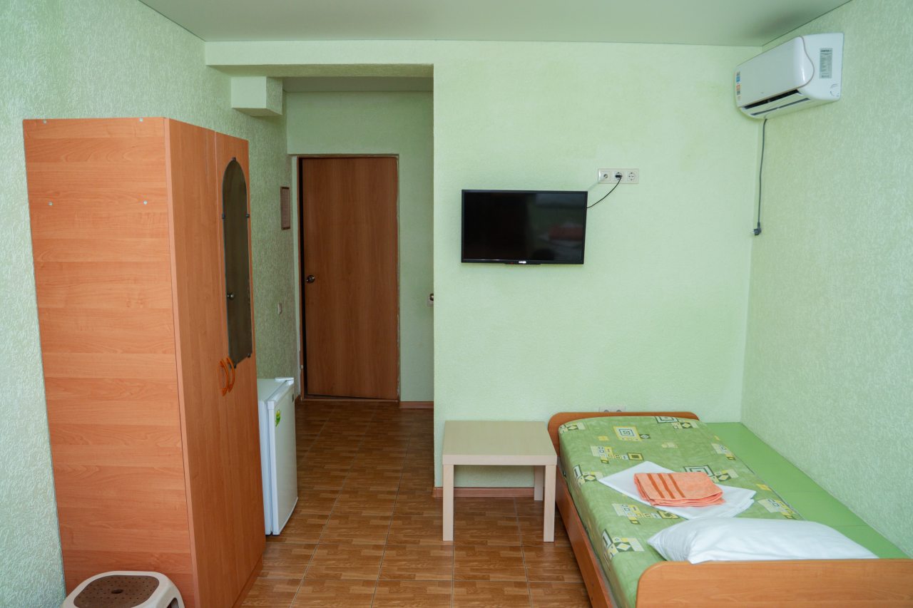 Серьезных минусов здесь нет, условия достаточно скромные, но и цена невысокая. Проблем с бронированием не было. Номер с кондиционером, небольшой по площади, но есть все для нормального удобного размещения. Единственное, море несколько далековато, с ребенком было утомительно до него прогуливаться.