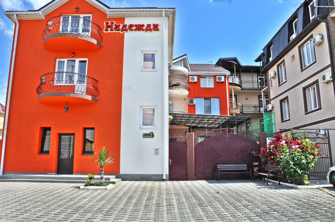 Гостевой дом «Надежда» расположен в поселке Витязево, возле салона красоты «Сказки Шахерезады».