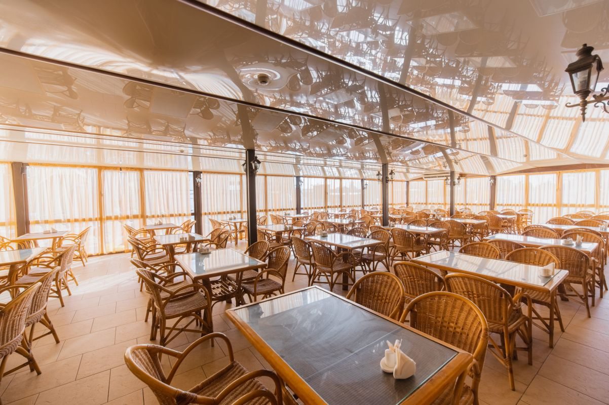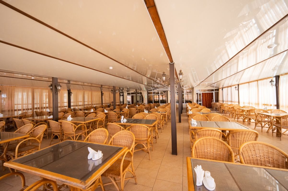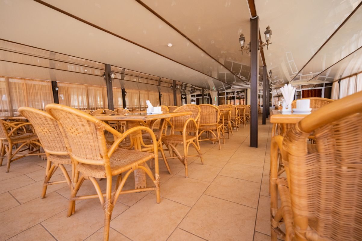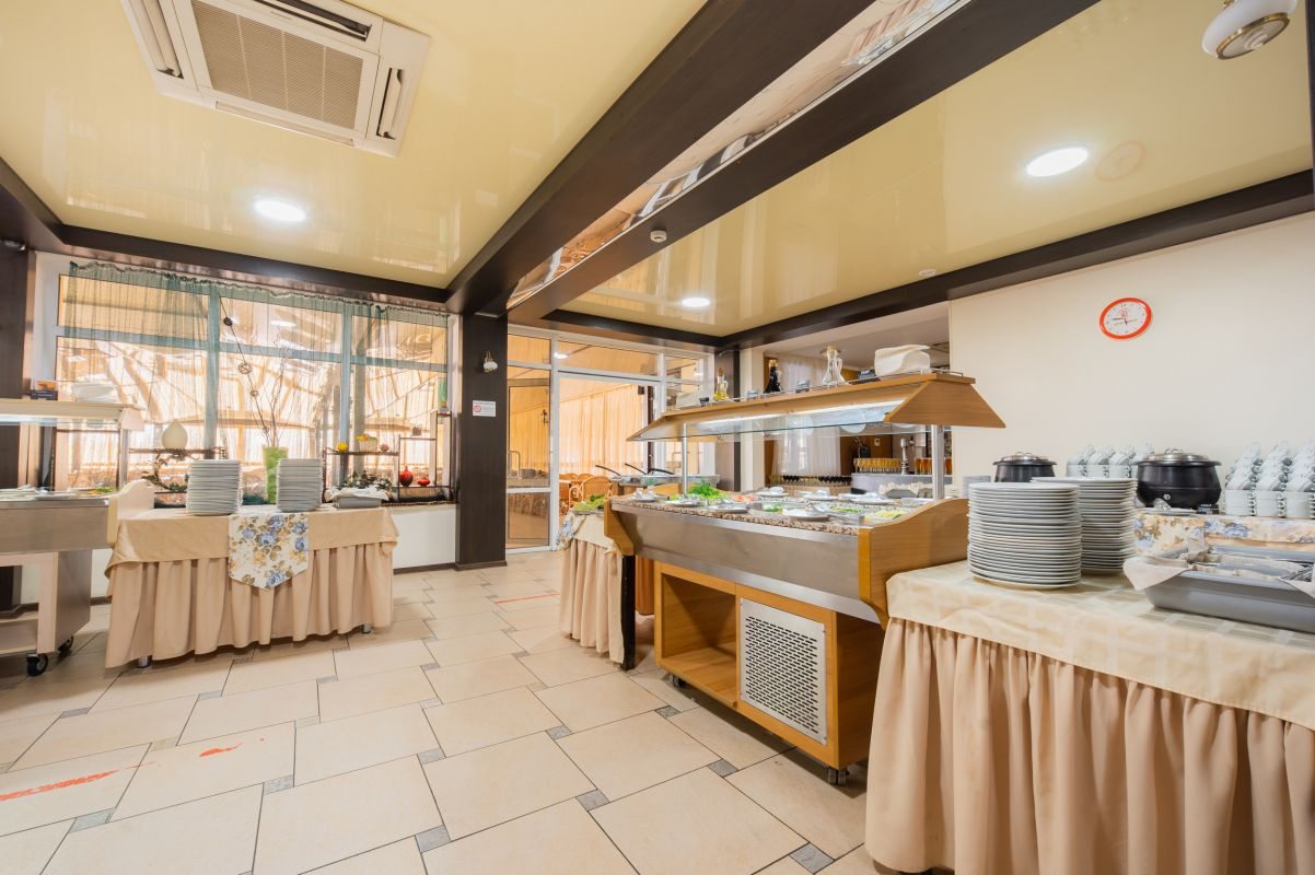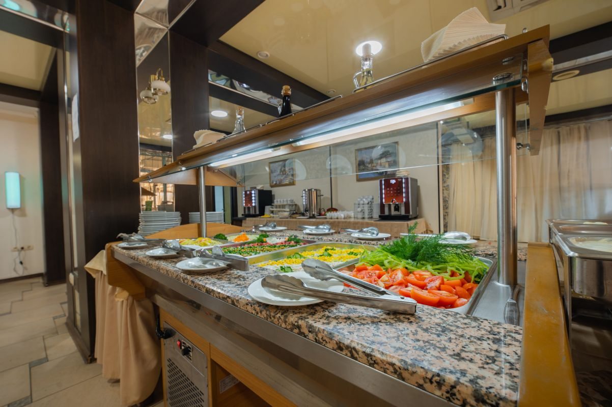 На территории отеля расположены ресторан «Терраса» и бар «Малибу». В ресторане гостям предлагается питание по системе «шведский стол» - 3 раза в день. Многие напитки предоставляются бесплатно по меню “Все включено”. Здесь предложен большой ассортимент изысканных блюд. Постояльцам понравится разнообразие первых и вторых блюд, салатов, десертов, а также напитков. В баре можно попробовать вкуснейшую пиццу или блинчики, а также другие закуски и эксклюзивные коктейли.