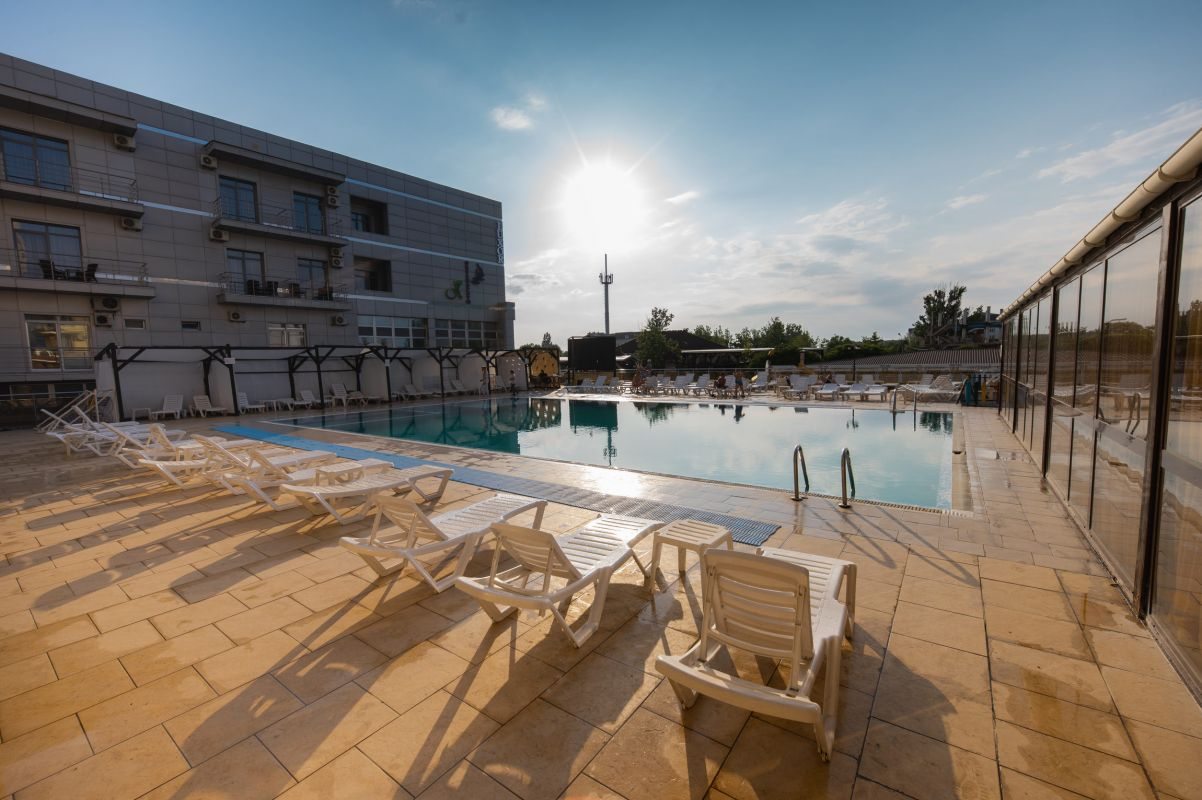В летний период на территории комплекса функционирует открытый плавательный бассейн. Возле бассейна оборудована площадка для загара с шезлонгами, работает небольшой бар.