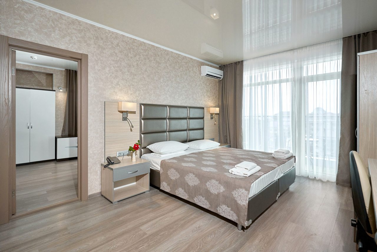 В Витязево мы бронировали номер в данном отеле. Он достаточно большой, поэтому номерной фонд приличный. Конечно, комнаты предлагаются разных категорий, а мы брали двухместный улучшенный номер. Очень понравилось, хотя цена на него и не сильно высокая. Сервис замечательный, уборки проводятся регулярно. В номере была своя ванная комната с полной комплектацией. Здесь же при отеле часто проводятся мероприятия. Описание организовано по системе шведский стол.