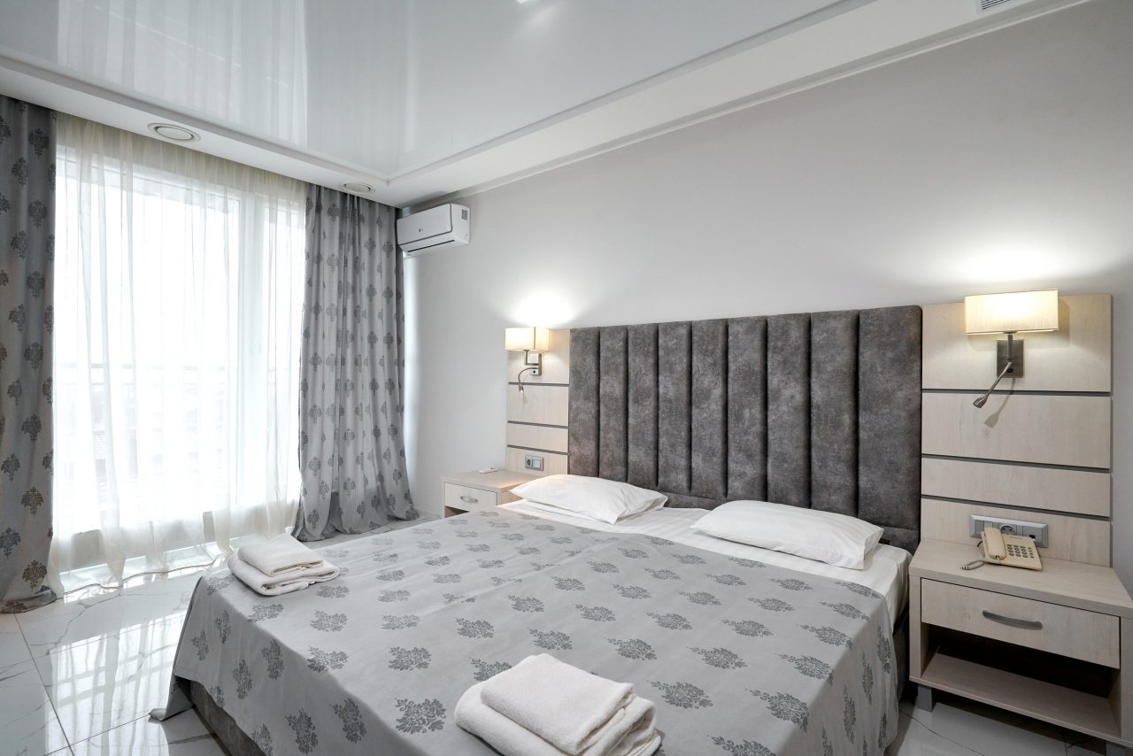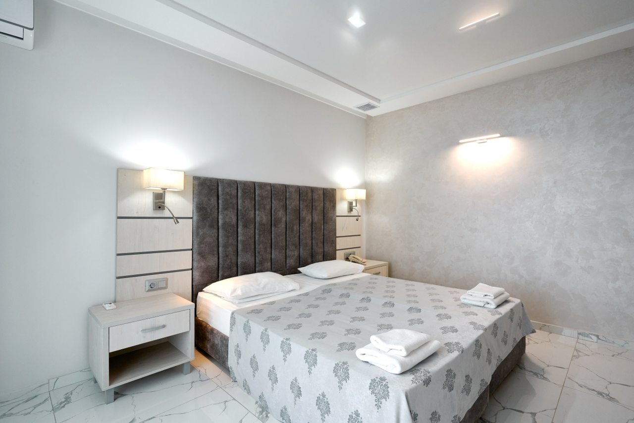 Останавливались в июле — отель оставил яркое впечатление благодаря отличной территории и доброжелательной атмосфере. Много зелени, красивый ландшафтный дизайн и уютные уголки для отдыха создают ощущение загородного пансионата. Бассейн чистый, вода комфортной температуры, дети были в восторге. В номере всё аккуратно и просто, постельное бельё качественное. Завтраки вкусные, порции сытные. До моря минут десять неспешным шагом.