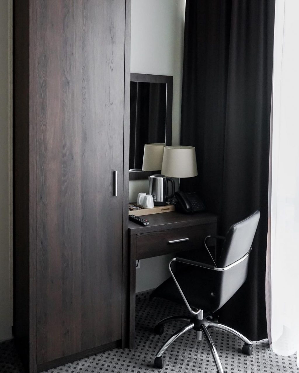 Уютный номер, есть все необходимое, особенно впечатлило очень много мест для хранения вещей в номере для четверых.