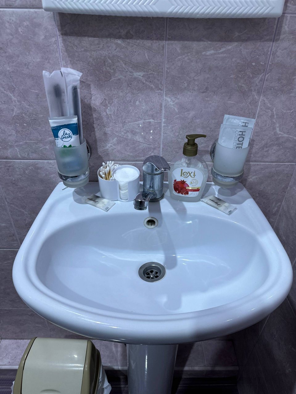 Нам есть с чем сравнить, приехали сюда из Грозного. Здесь на порядок лучше. Отношение очень доброжелательное. Заселили за пару минут. В номере большая кровать, шкаф, полноценная ванна комната со всеми необходимыми принадлежностями.