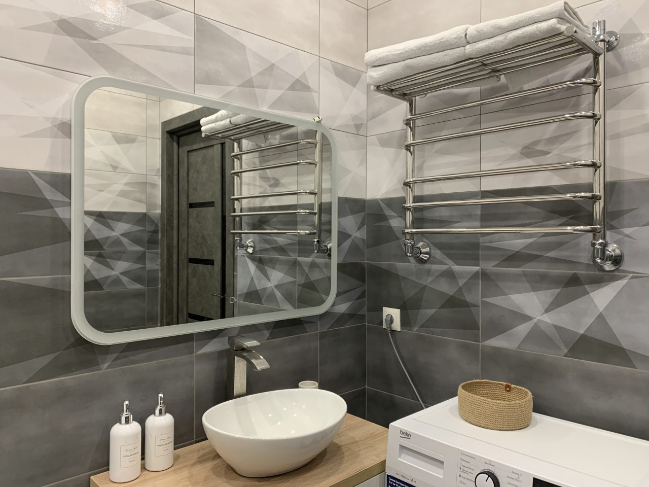 К пребыванию подготовлены светлые апартаменты в современном стиле. Они укомплектованы комфортабельной мебелью и техникой для приятного времяпровождения и отдыха: двуспальная кровать с белоснежным постельным бельем, шкаф для хранения личных вещей, диван. В ванной комнате установлена стиральная машинка.