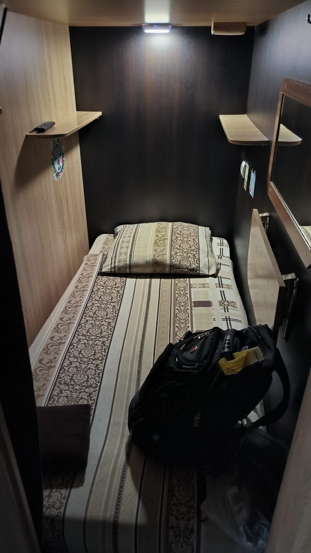 Заселение в наш номер было рано утром, капсулу еще тогда не освободили, но нам разрешили оставить багаж, мы переоделись и ушли на прогулку, заселили в 10 утра. Нас это решение в целом устроило. Администраторы – вежливые, было приятно с ними общаться. Капсула оказалась то, что нужно.