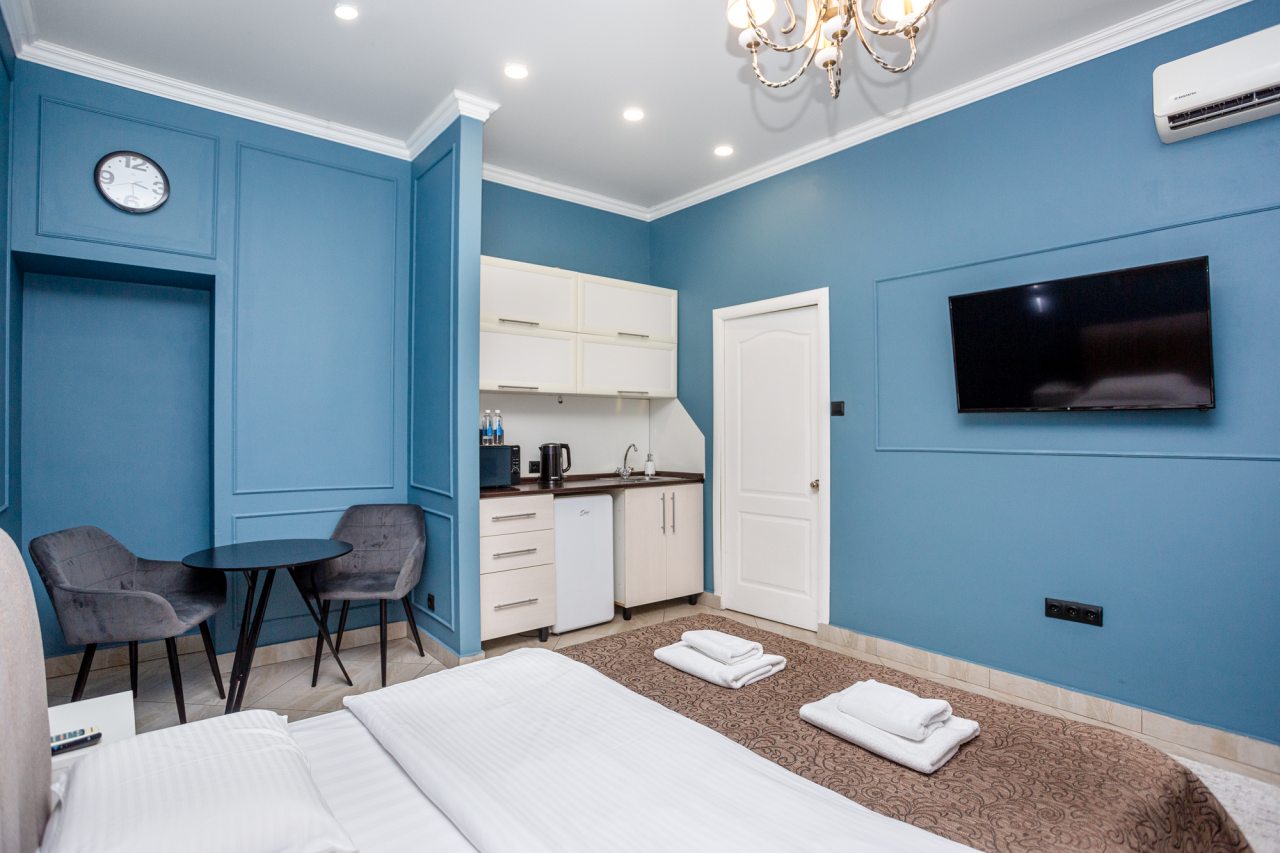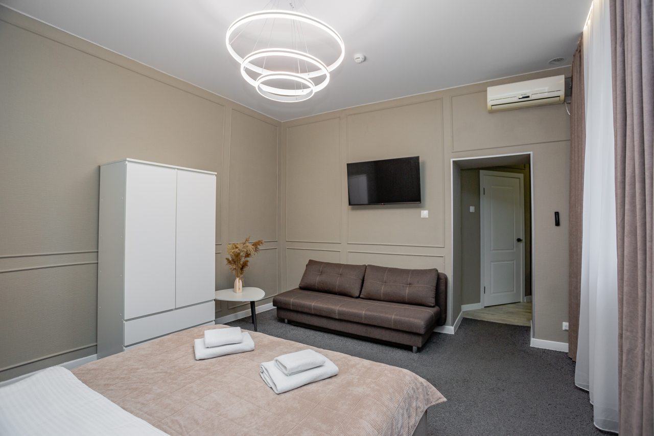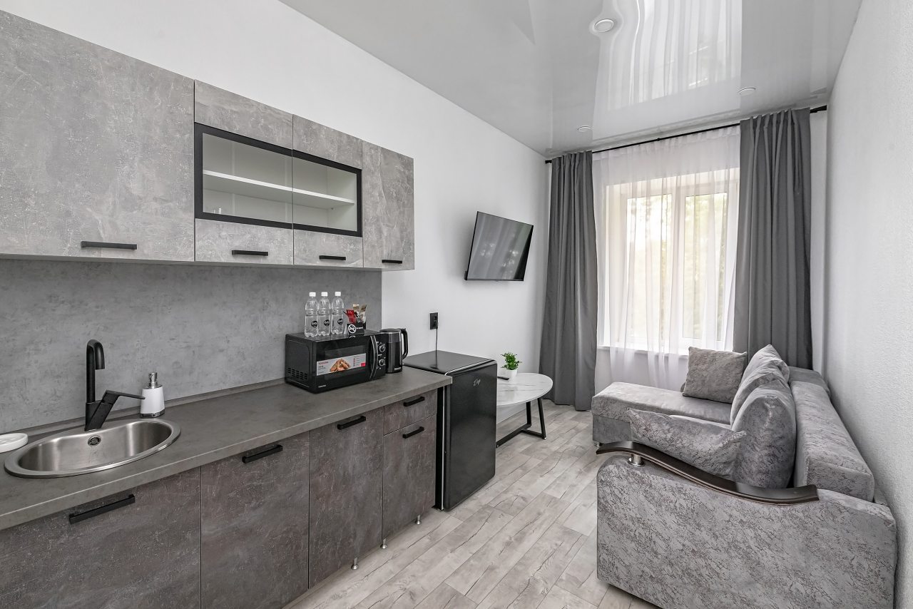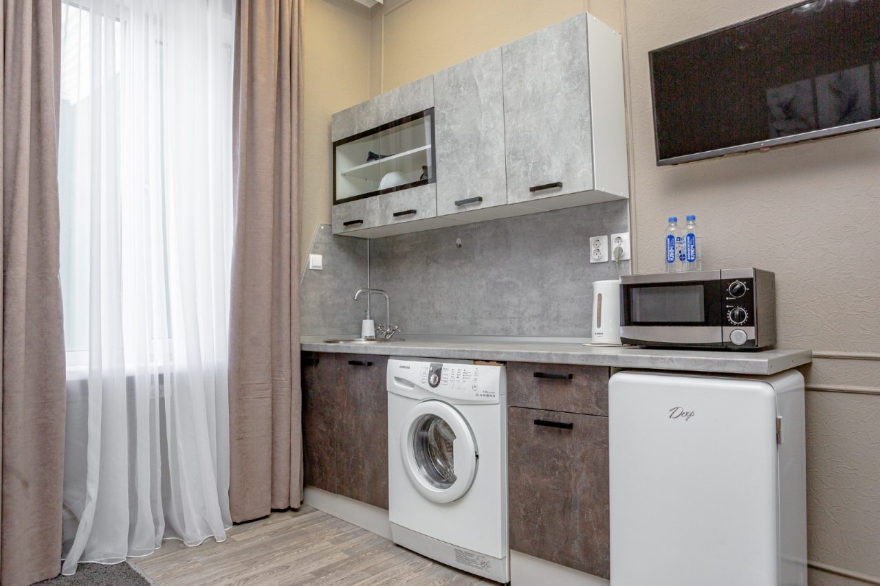 Оборудован номер, полностью.Как маленькая квартирка.Все есть,для полноценной жизни.Центр города,все в шаговой доступности.РЕКОМЕНДУЮ