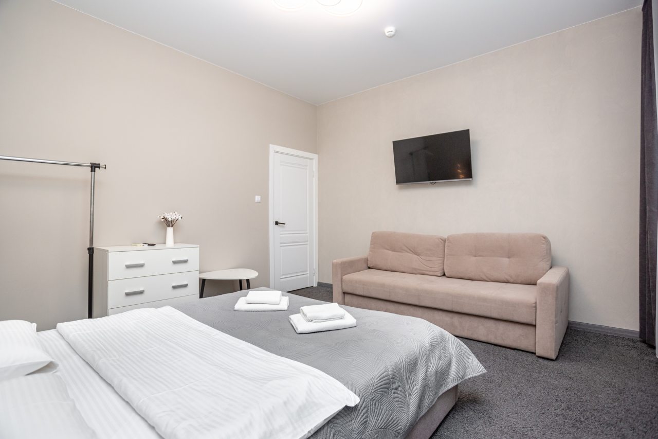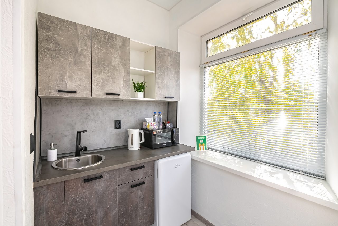 Проживала в отеле согласно бронированию. Бронировала заранее, примерно за два месяца, планировалось провести здесь четыре ночи. Но при заселении мне сообщили, что спустя две ночи мне нужно будет переехать в другой номер, без объяснения причины и заранее об этом не предупреждали. Мне этот переезд был неудобен, так как в этот день запланирована была экскурсия с утра и на весь день. Но согласились в день переезда приютить мою сумку и продукты из холодильника на ресепшене. Ну хотя бы так. Общее впечатление было испорчено. А так расположение удобное , в самом центре. Рядом есть продуктовые магазины, кафе, корабельная и спортивная набережные, кинотеатр. Всегда можно выйти погулять по красоте. На кухне есть вся необходимая техника, мебель. В санузле также есть всё необходимое. Одноразовые гигиенические средства предоставлены. Чистое и белое постельное белье, набор полотенец. Так в целом вполне прилично , оба номера примерно на одном уровне, только планировка разная, первый мне больше понравился. Но из - за внепланового неудобного мне переезда сюда не вернусь при следующем посещении города и рекомендовать не буду, если конечно вы не любите подобные сюрпризы. Я лично не люблю.