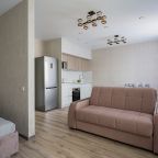 Апартаменты в новом жилом комплексе встречают гостей, приехавших с туристической или деловой целью. В них имеется двуспальная кровать и раскладной диван, плазменный телевизор для просмотра фильмов, а также небольшая гардеробная с гладильными принадлежностями и просторная ванная.