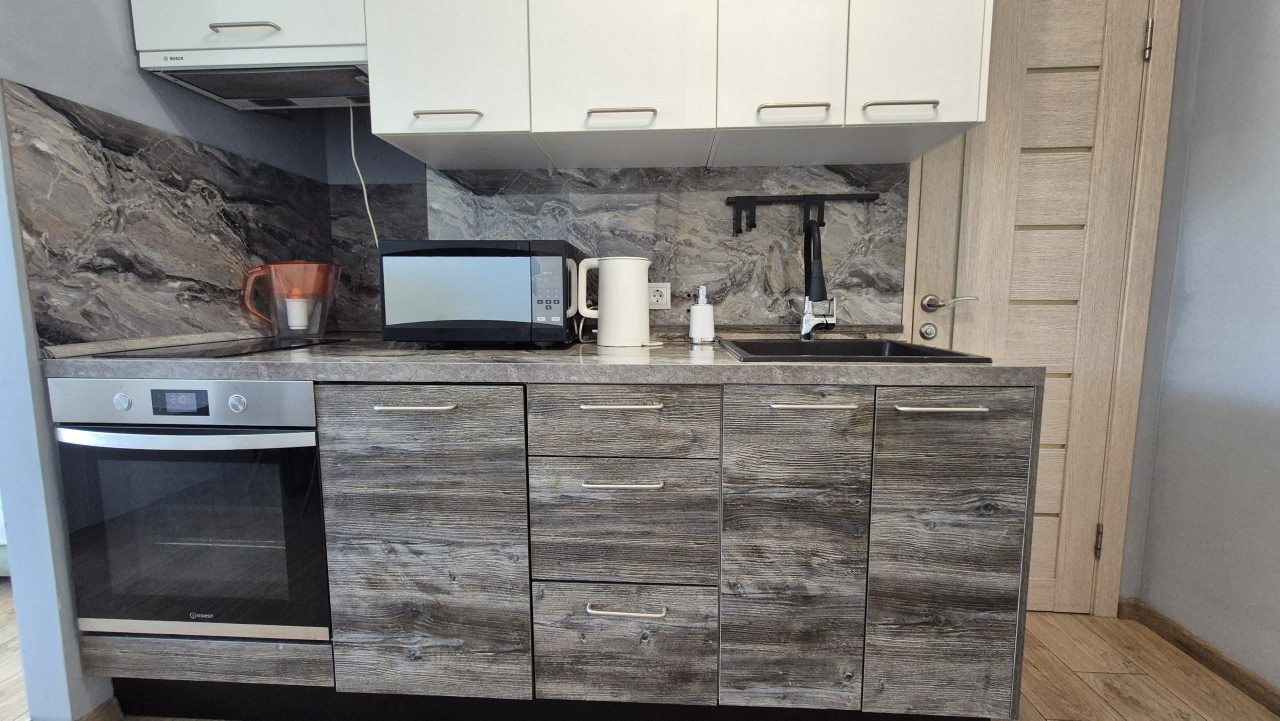 Кухонная зона имеет гарнитур, обеденный стол и всю необходимую бытовую технику, например: холодильник, варочную панелью, микроволновую печь и др. Пообедать можно в ближайшем кафе.