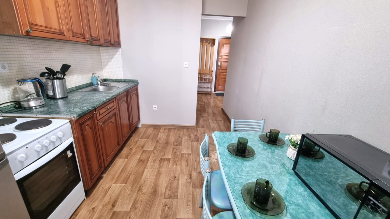 Кухня оснащена всем необходимым, включая посуду, плиту, духовой шкаф, холодильник, чайник, СВЧ.