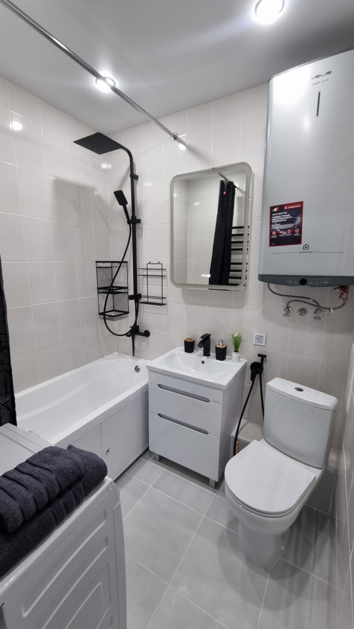 Гостям предлагается разместиться в уютной квартире с современным ремонтом оборудованной удобной двуспальной кроватью с чистым постельным бельем, прикроватной мебелью, затемненными шторами, телевизором, кладовой, гладильными принадлежностями, балконом, кондиционером и wi-fi. Санузел оснащен сантехникой, стиральной машиной, полотенцесушителем, гигиеническим душем.