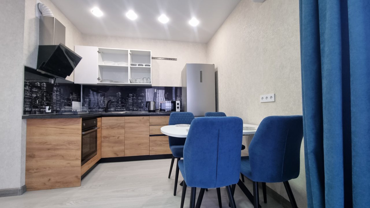 Кухня укомплектована гарнитуром, обеденным столом и всей необходимой бытовой техникой. В доступности кафе и продуктовый магазин.