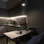 Кухонная зона имеет все необходимое для самостоятельного приготовления еды. В наличии: холодильник, микроволновая и духовая печь, плита. В распоряжении набор посуды и столовых приборов. Рядом работают кафе и продуктовые магазины.