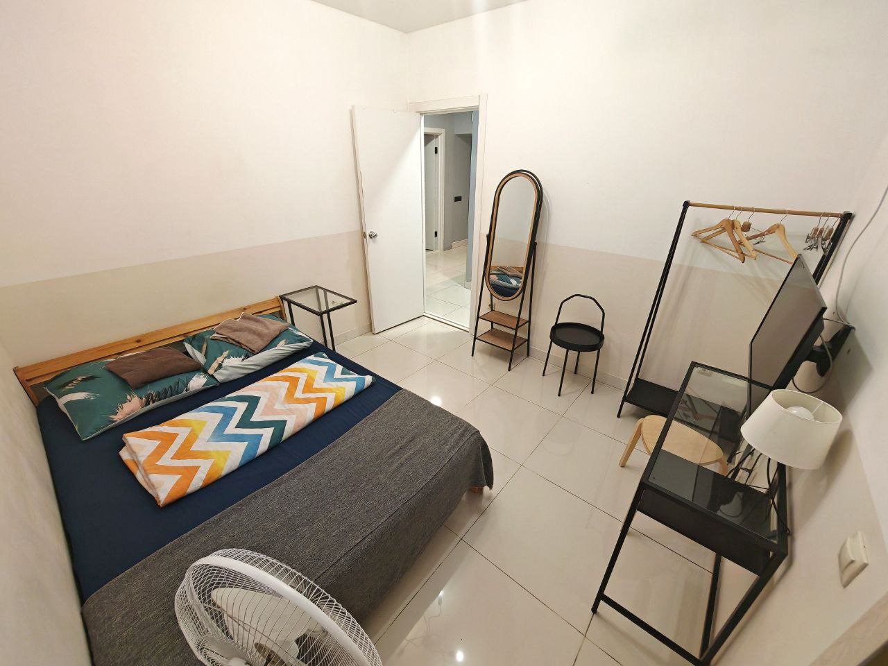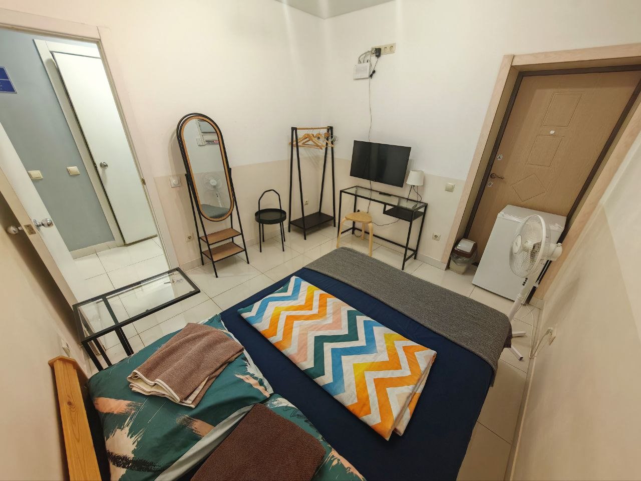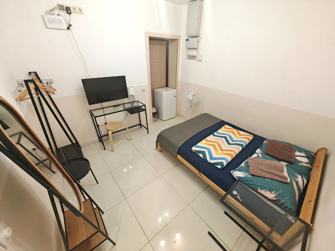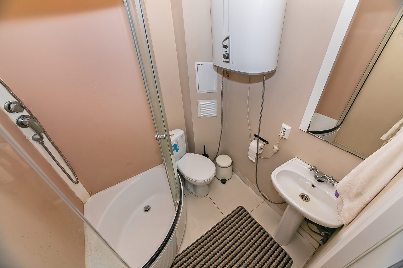 Номер семейный с ванной комнатой и стиральной машиной, есть шкаф, много вешалок, столик стеклянный и др. Для семьи с 2 детьми или 4 друзьям очень неплохо. Заселение бесконтактное, быстро. Консультируют по Ватсапп.