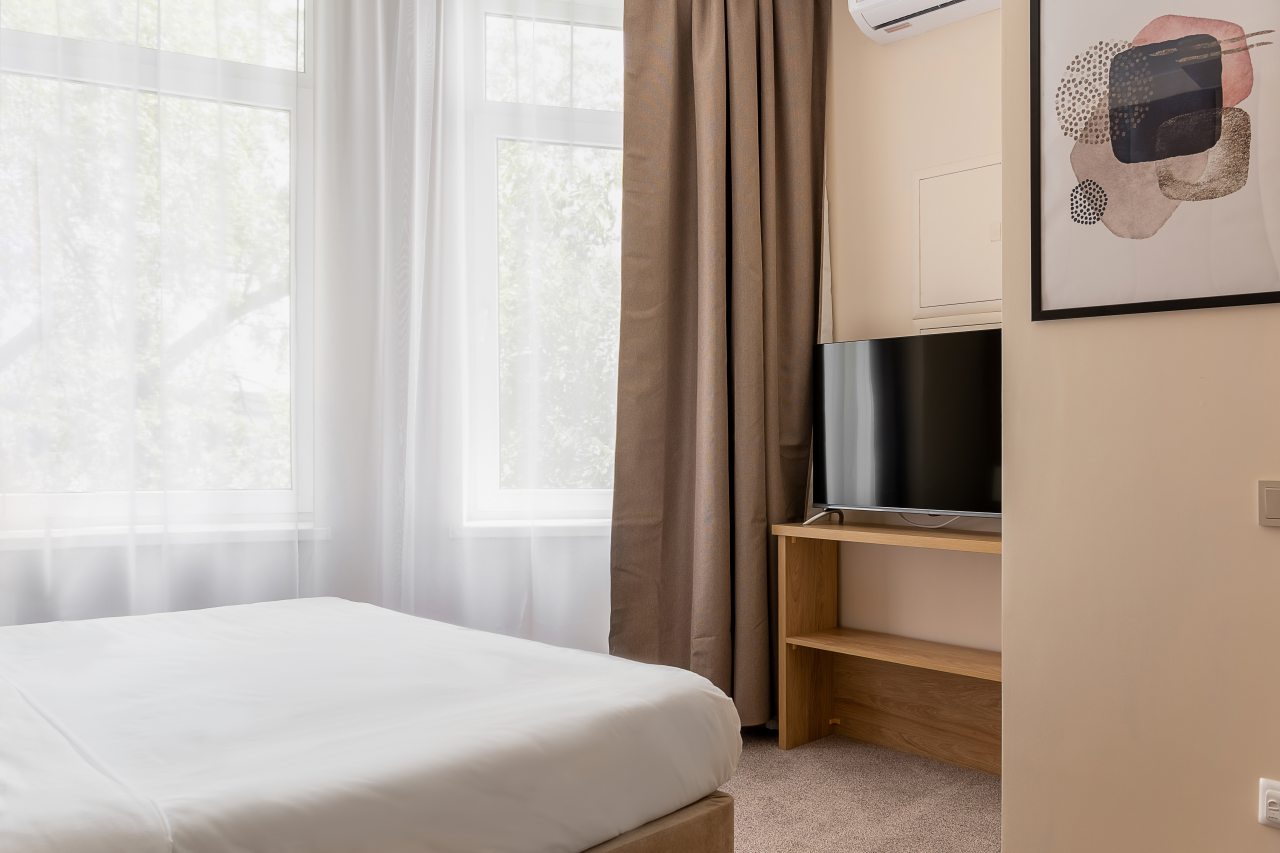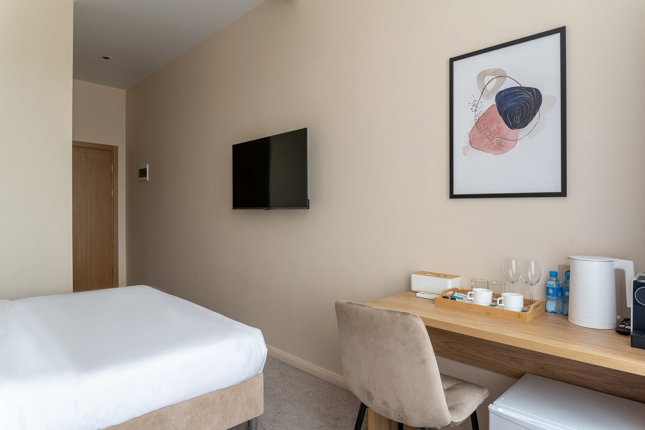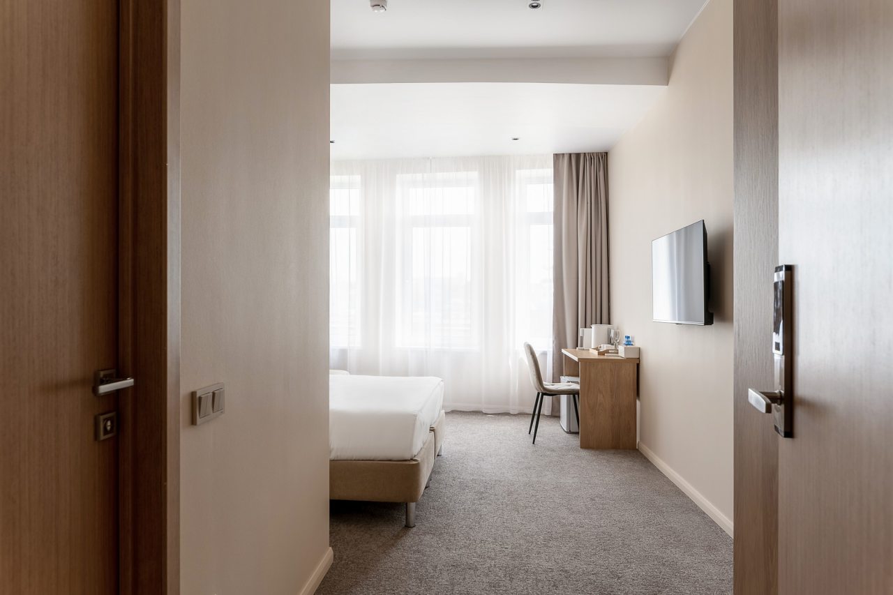 Администратор был очень добрым и всегда старался помочь нам, если мы обращались. Хороший европейский ресторан рядом. Комната убиралась каждый день. Кровать показалась маловатой для взрослого 1,7м. Стены слишком тонкая, соседей слышали отлично. В соседнем номере поселилась общительная девушка, которая любила чатиться допоздна.