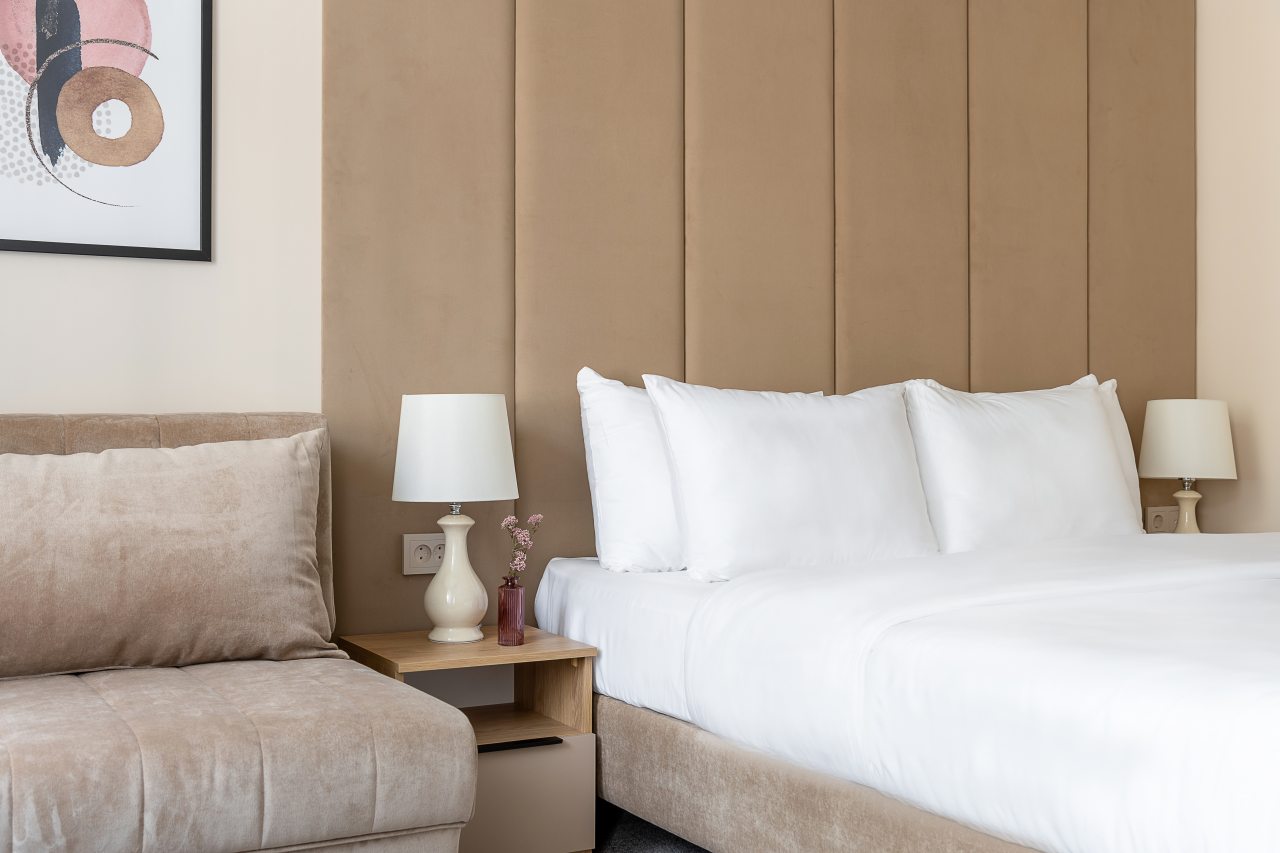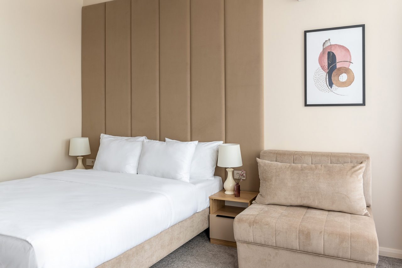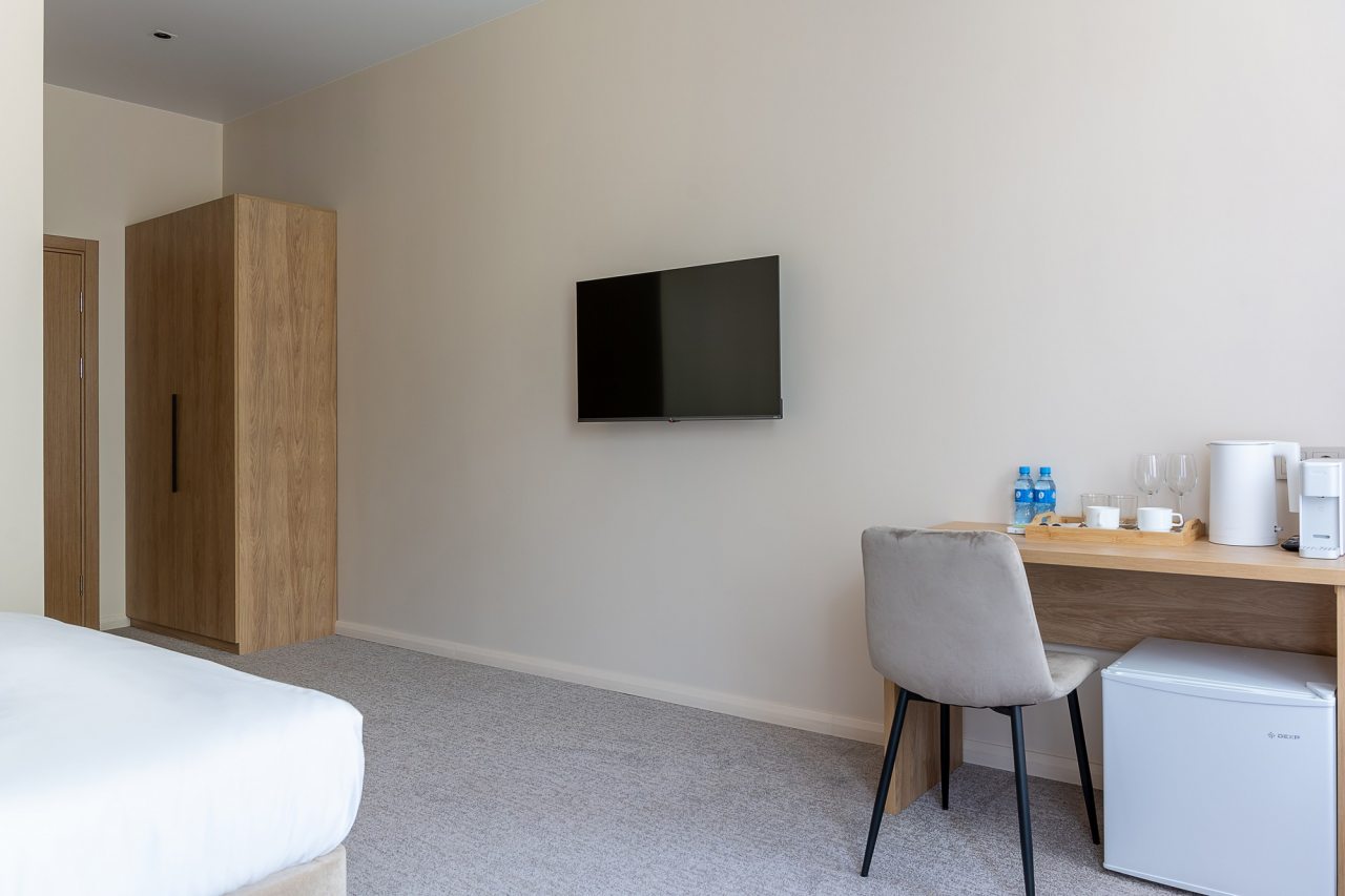 Для гостей доступны номера, различные по вместимости и категориям. Все из них укомплектованы качественной техникой и мебелью, в том числе удобными кроватями с мягким изголовьем, кондиционером, плотными шторами, прикроватными лампами и тумбами, смарт-ТВ. Также предусмотрен собственный санузел с душем и средствами для гигиены.