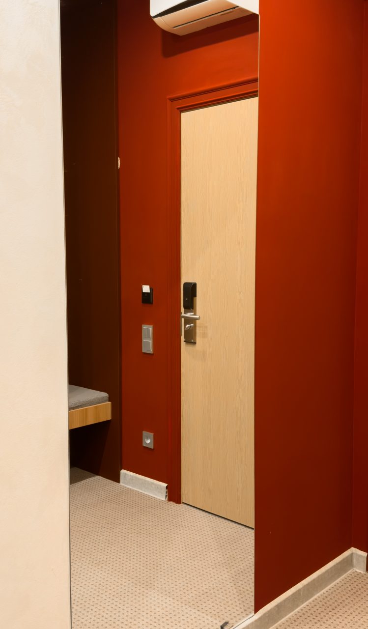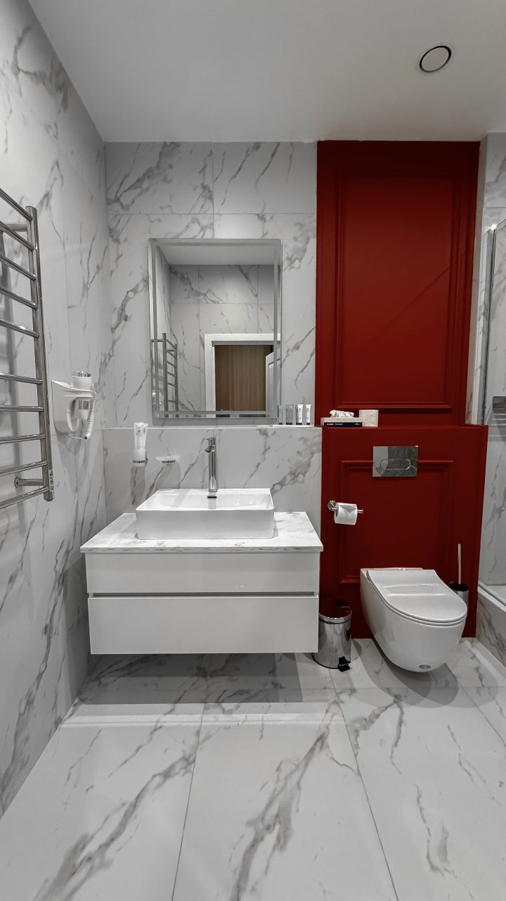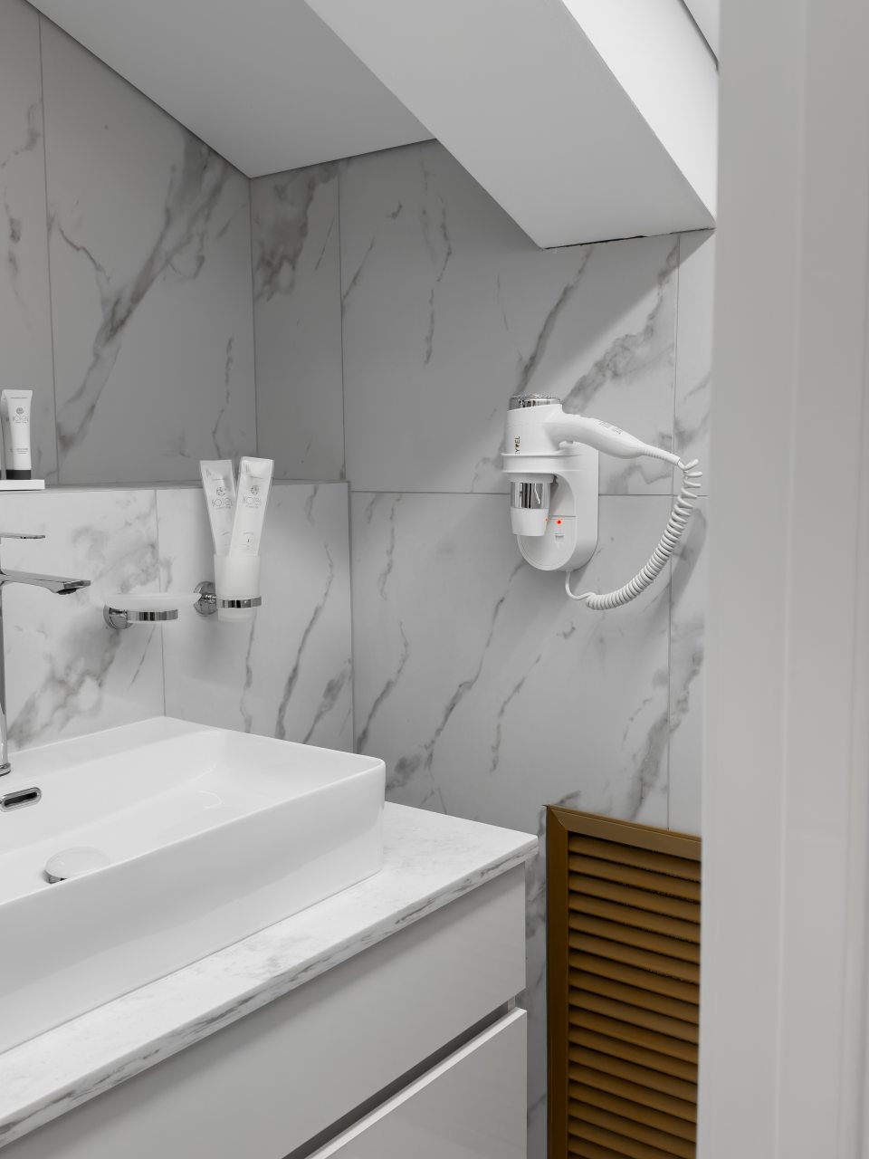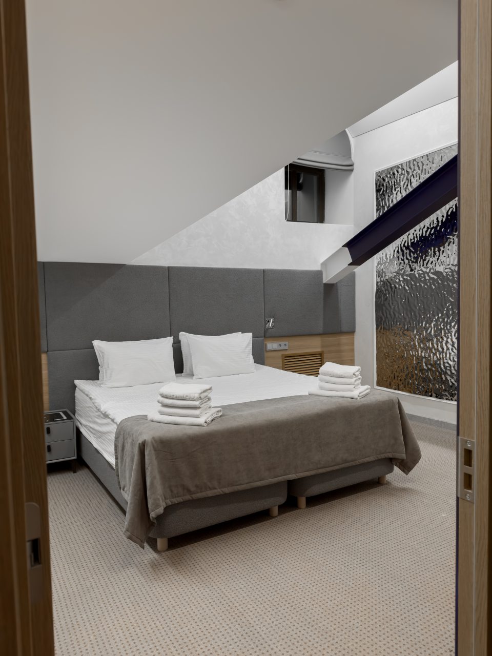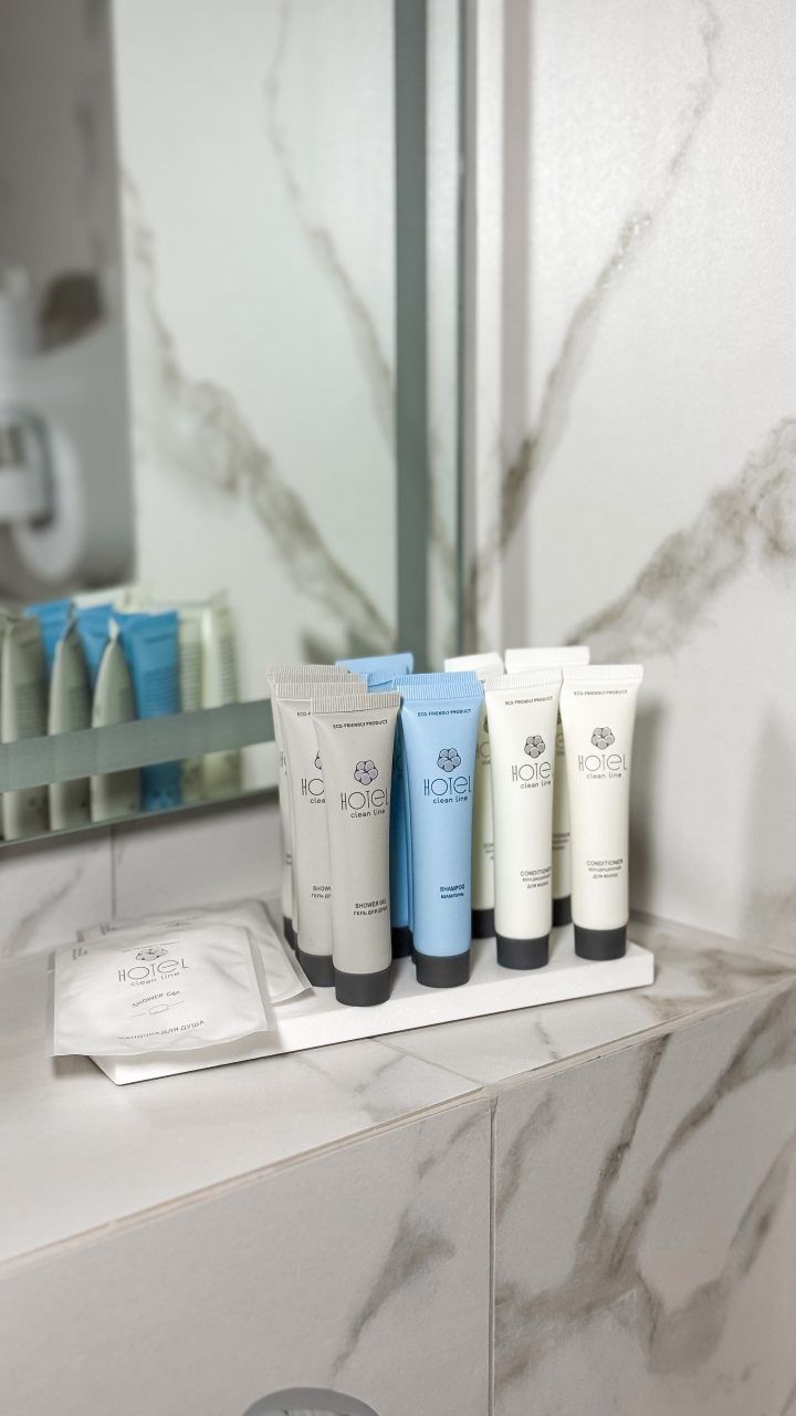 Каждый номер укомплектован новой качественной мебелью и техникой, в том числе кроватью с ортопедическим матрасом и высококачественным постельным бельем, шкафом с сейфом, смарт TV, комплектом полотенец, а также стильным санузлом с феном и средствами для личной гигиены. В распоряжении гостей бесплатный доступ к интернету, услуги прачечной и гладильная комната.