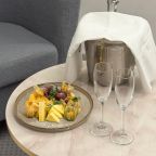 В здании отеля работает ресторан «Мясо», для гостей доступен заказ еды из ресторана в номер. Поблизости работает множество магазинов и кафе.