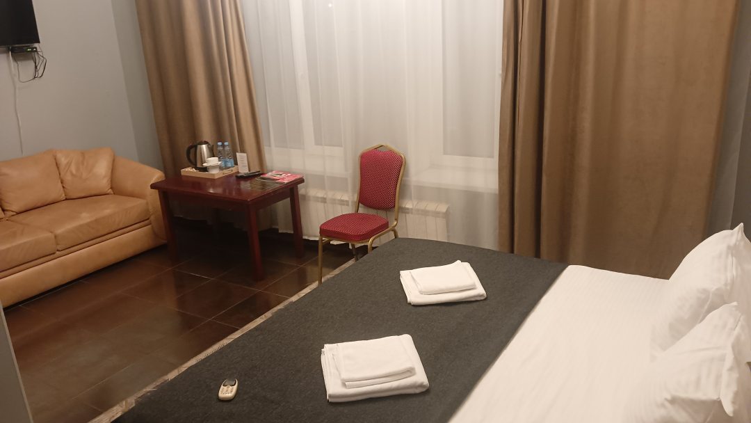 Чистый аккуратный отель расположенный на третьем этаже в гостевом комплексе, где на первом этаже сауна, на втором ресторан. Номер на 4-х вместительный, детям поставили достаточно удобные раскладные кровати. Завтрак шведский стол очень вкусный, постоянно пополняется. Хороший напор воды. Удобные матрасы, чистое белье.