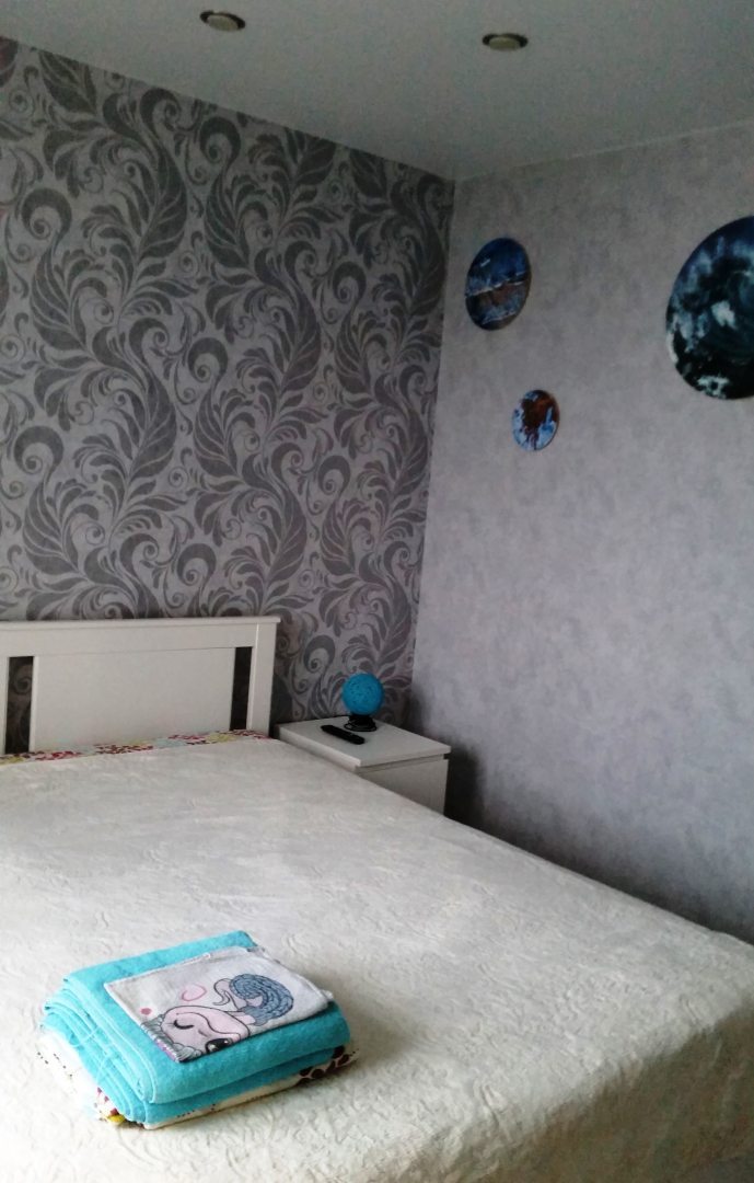 Квартира евродвушка. Вполне может принять до четырех гостей. Я был с женой и дочками, приехали в Воронеж к родственникам, по ТЦ походить, для девчонок развлечения разные, ну и просто сменить обстановку. Проживали в этой квартире в центре. Нам места хватило, спали хорошо, и кухня тут укомплектована, удобно.