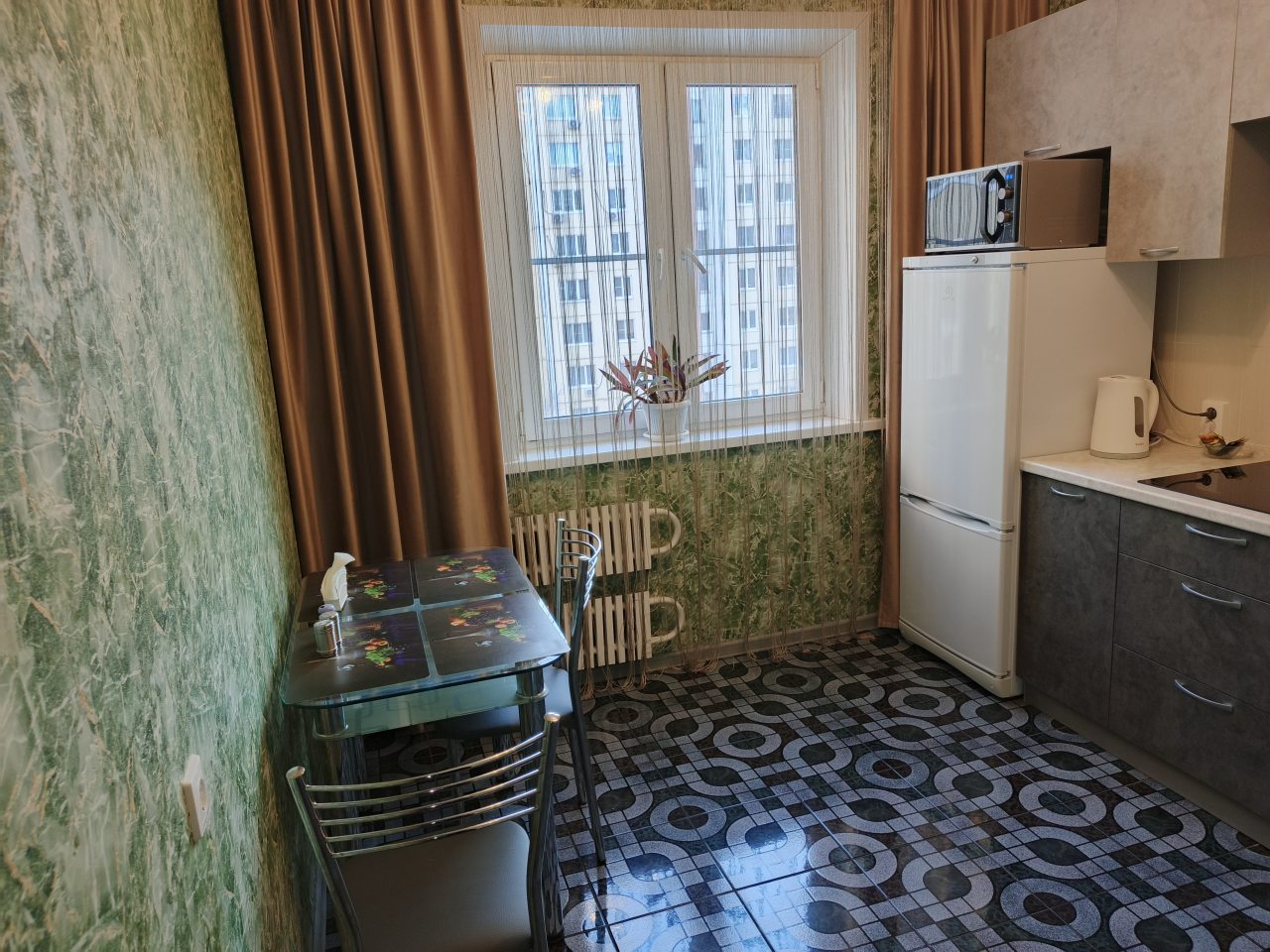 Простая, но по домашнему уютная квартира. К состоянию апартаментов замечаний нет, все было чисто, и мебель с техникой в хорошем состоянии. Рядом и пекарня, и магазин продуктовый, чтобы закупить продукты, и сквер, куда мы ходили по вечерам прогуливаться.