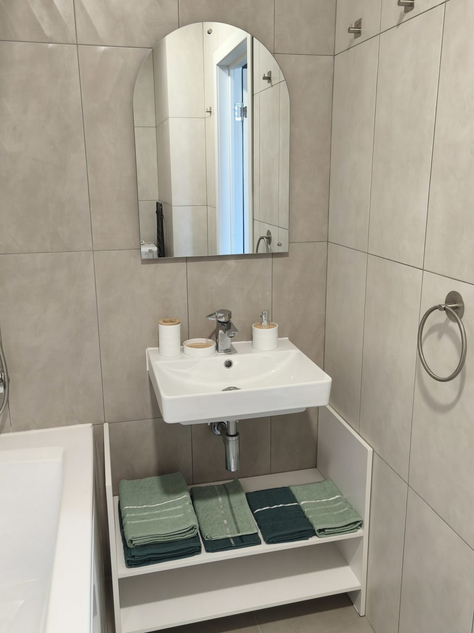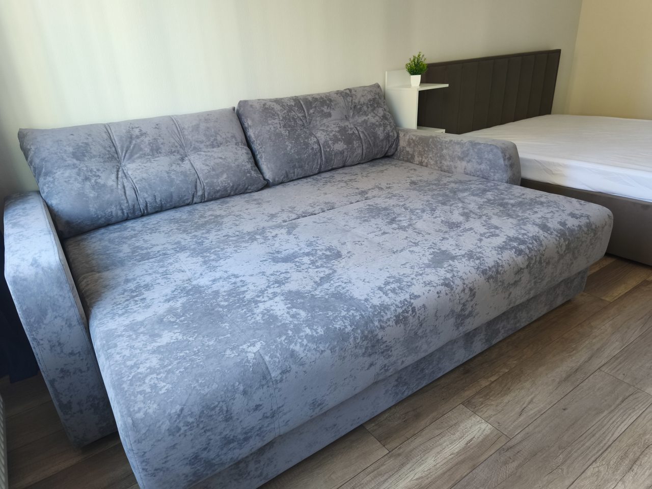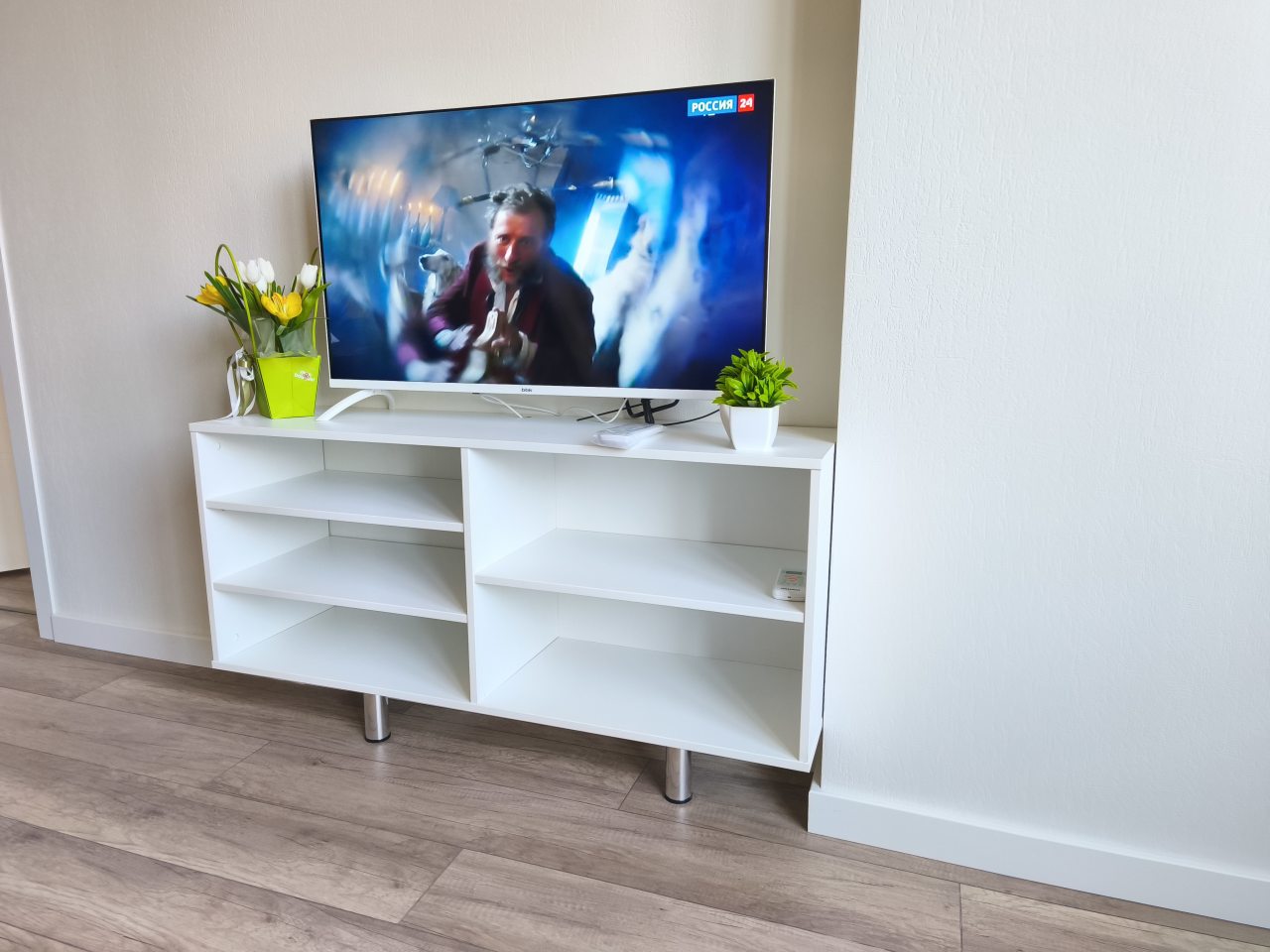 Внутри все предусмотрено для комфортного проживания, включая двуспальную кровать с удобным матрасом, мягкий диван с телевизором, кондиционер, шкаф-купе с зеркалом в полный рост, просторный балкон, а также ванную комнату с набором полотенец и стиральной машиной.