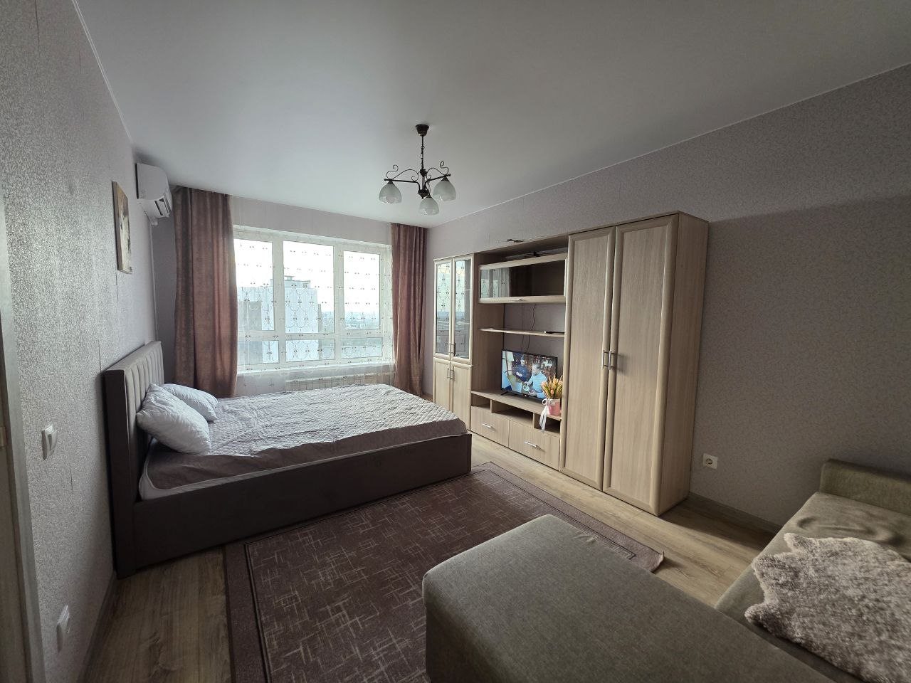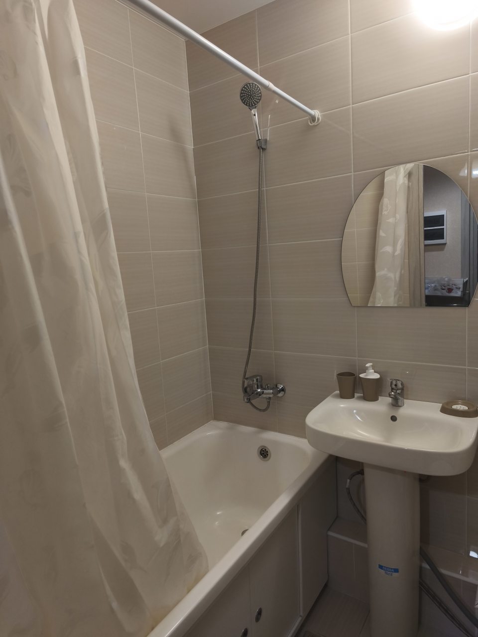 Для отдыха и проживания предоставляется уютная светлая квартира, где может разместиться небольшая семья или группа друзей. Для комфорта есть кровать, раскладной диван, а также телевизор, рабочий стол и ванная комната.