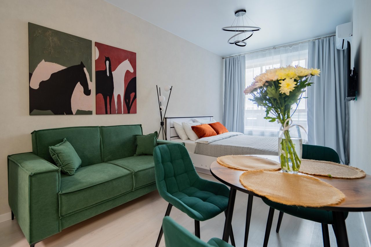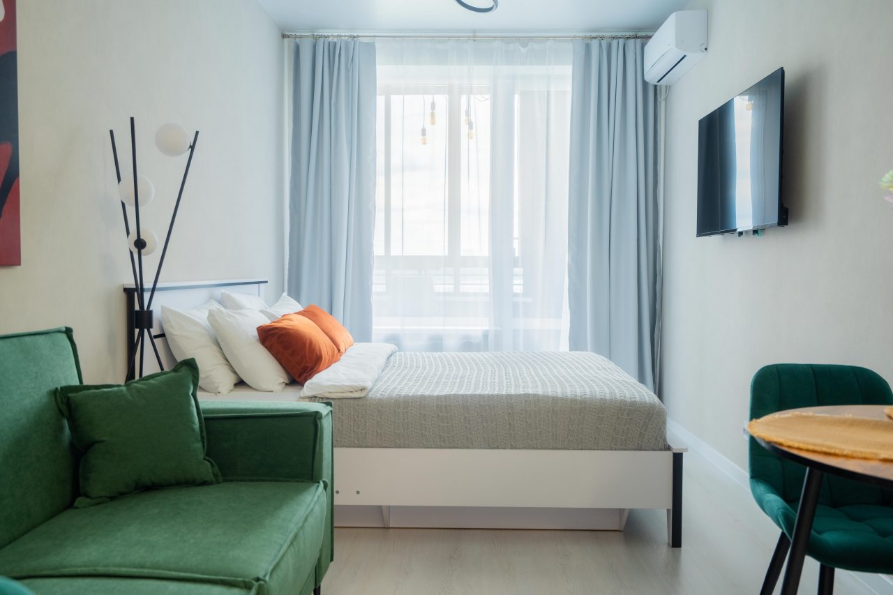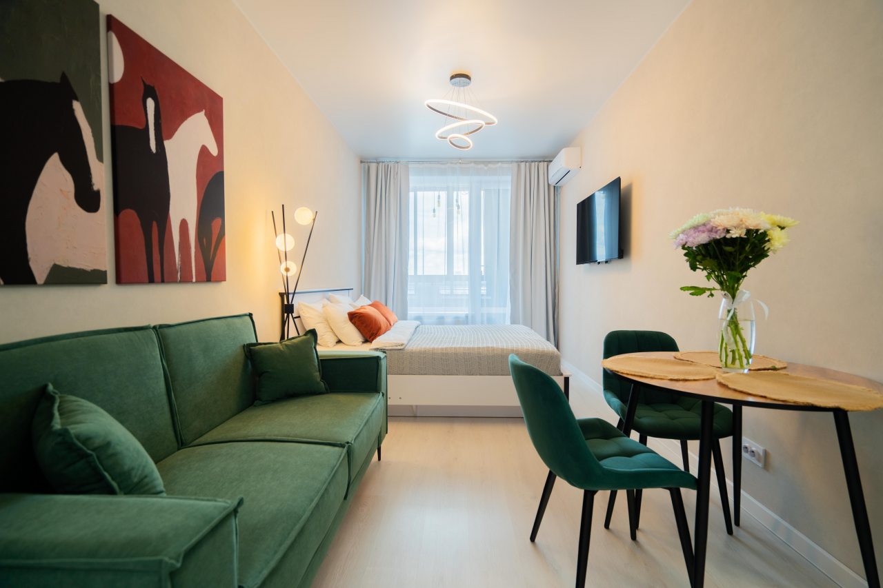 «Видовая студия возле парка Дельфин» — это стильные и современные апартаменты, которые находятся территориально в Воронеже, рядом с одноименной рекой.