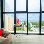 Стильные апартаменты оборудованы двуспальной кроватью с чистым комплектом постельного белья, прикроватными тумбами, шкафом, затемненными шторами, кондиционером, гладильными принадлежностями, телевизором с цифровым телевидением, лоджией с видом на город и wi-fi. Санузел раздельный и оснащен современной сантехникой, стиральной машиной, гигиеническими средствами.