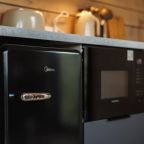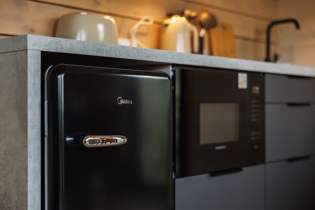 На кухне имеются бытовые приборы для самостоятельного приготовления блюд: тостер, чайник, холодильник и кухонная утварь. На территории имеется кафе, где гости могут насладиться блюдами по меню.