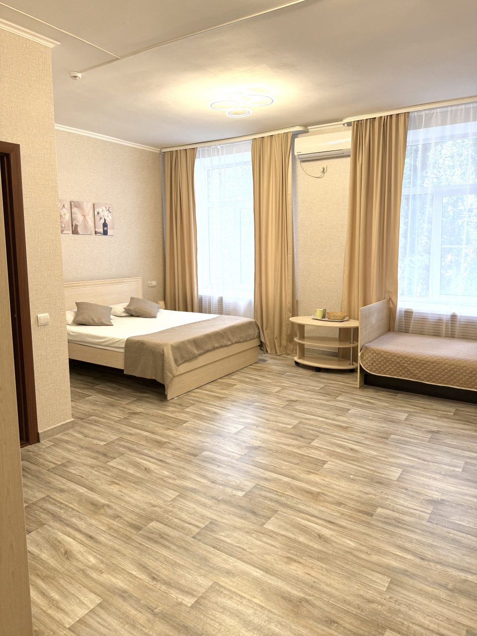 104 комнаты понравились. Приезжали с женой в Воронеж, забронировали двухместный номер и хорошо здесь отдохнули. Убрано хорошо. В санузле душевая кабина, режимы разные. Звукоизоляция отличная, техника климатическая есть. Телевизор работает. Одноразовые принадлежности предоставляют. Обязательно порекомендую вас своим знакомым.