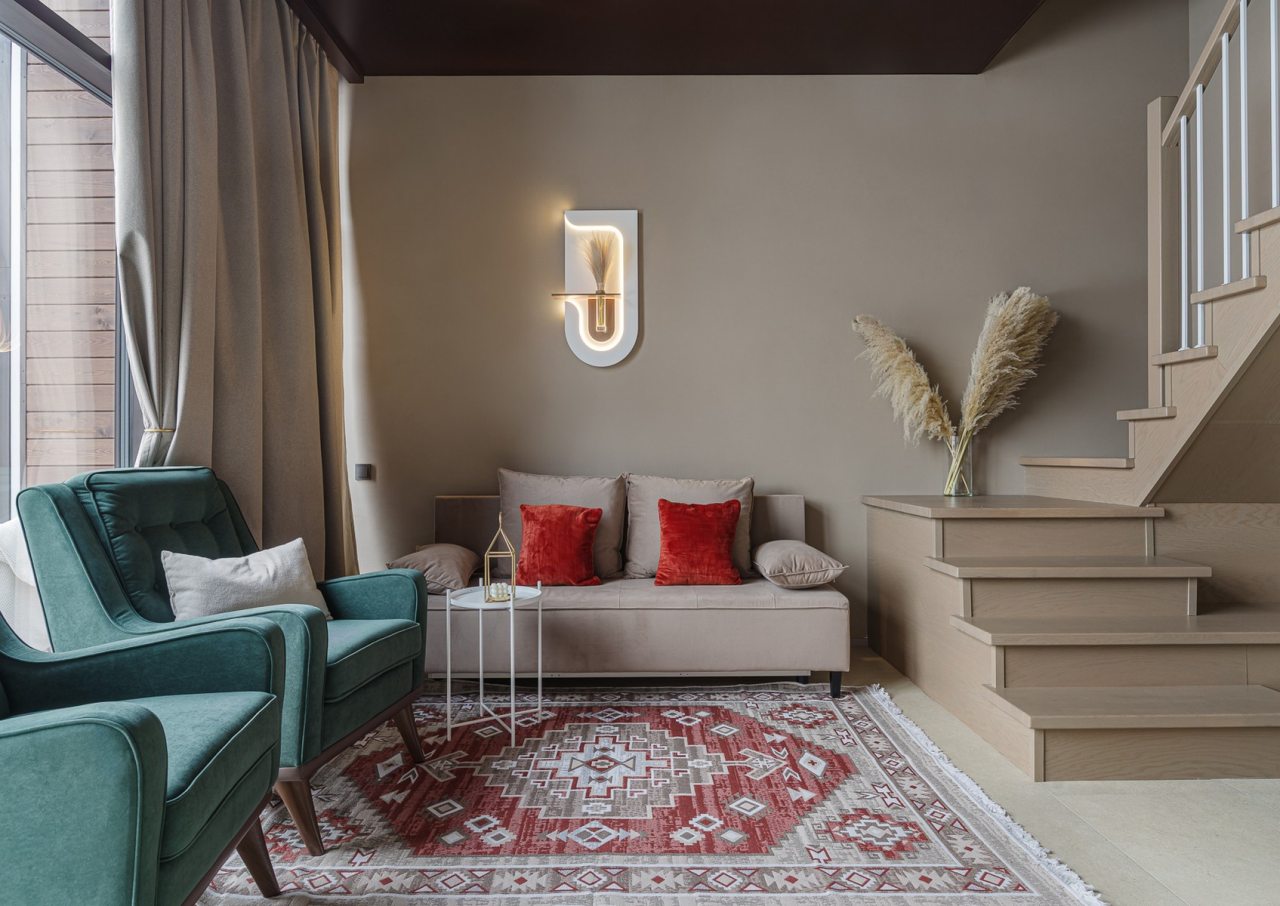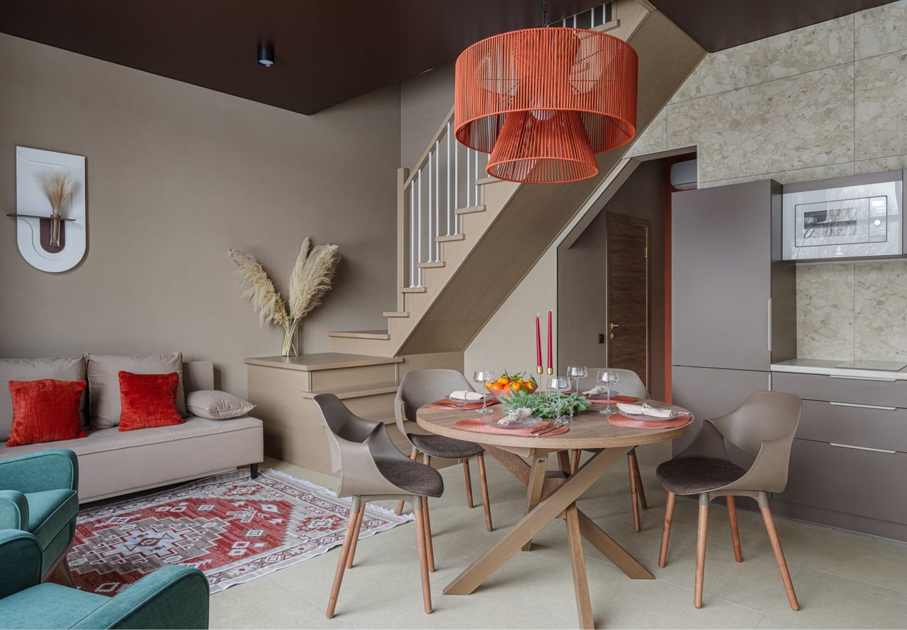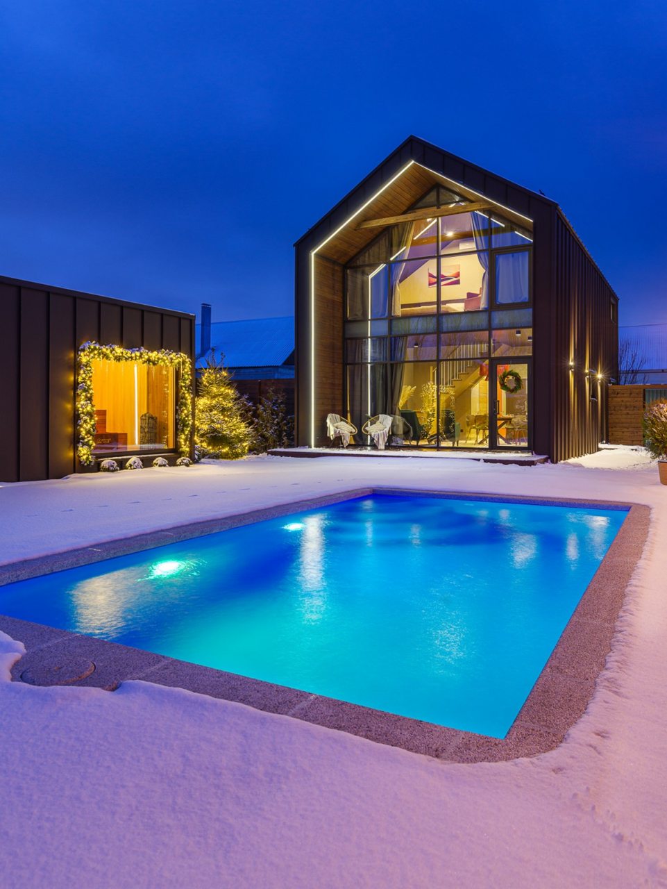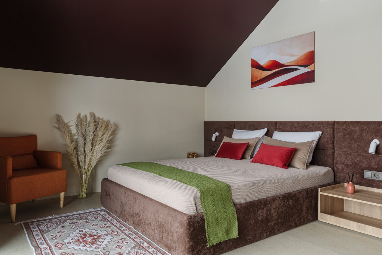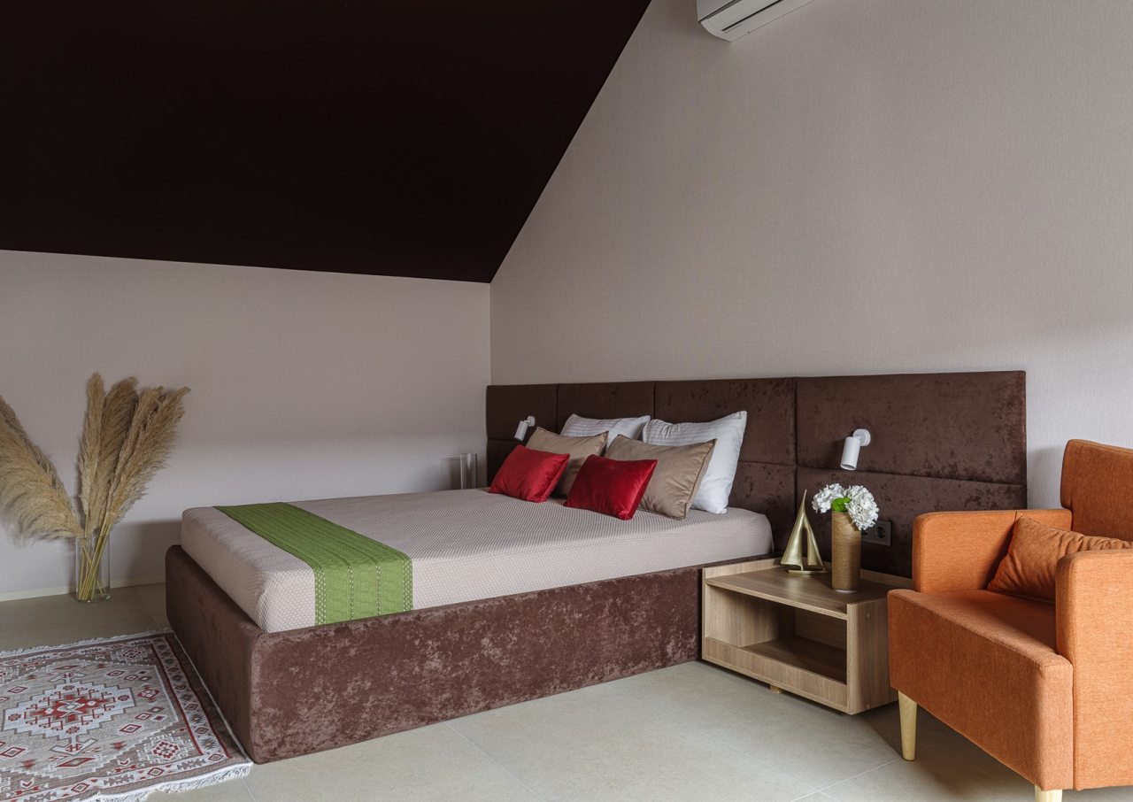 Для проживания и отдыха предоставляется современный барнхаус с вместимостью до 6 человек. Пространство разделено на несколько зон: гостиная с телевизором, обеденной зоной и удобным диваном, спальни и ванная комната. Благодаря панорамным окнам вы можете наслаждаться потрясающими видами прямо из комнаты.