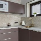 На кухне вы найдете бытовую технику, благодаря которой вы сможете самостоятельно организовать питание: микроволновая печь, электрический чайник, электроплита. На территории также есть мангальная зона.