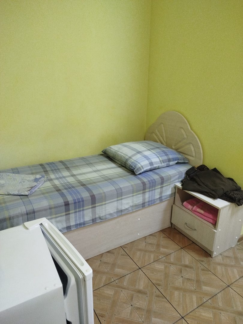 Мы бронировали двухместный номер с общей кроватью на несколько дней. Обстановка неплохая, я бы сказал стандартная. Кровать удобная, постельное чистое. Есть небольшой холодильник, чайник, микроволновка присутствуют. Рядом с кроватью есть тумбочка. В санузле оборудован душ (лейка на поддоне).