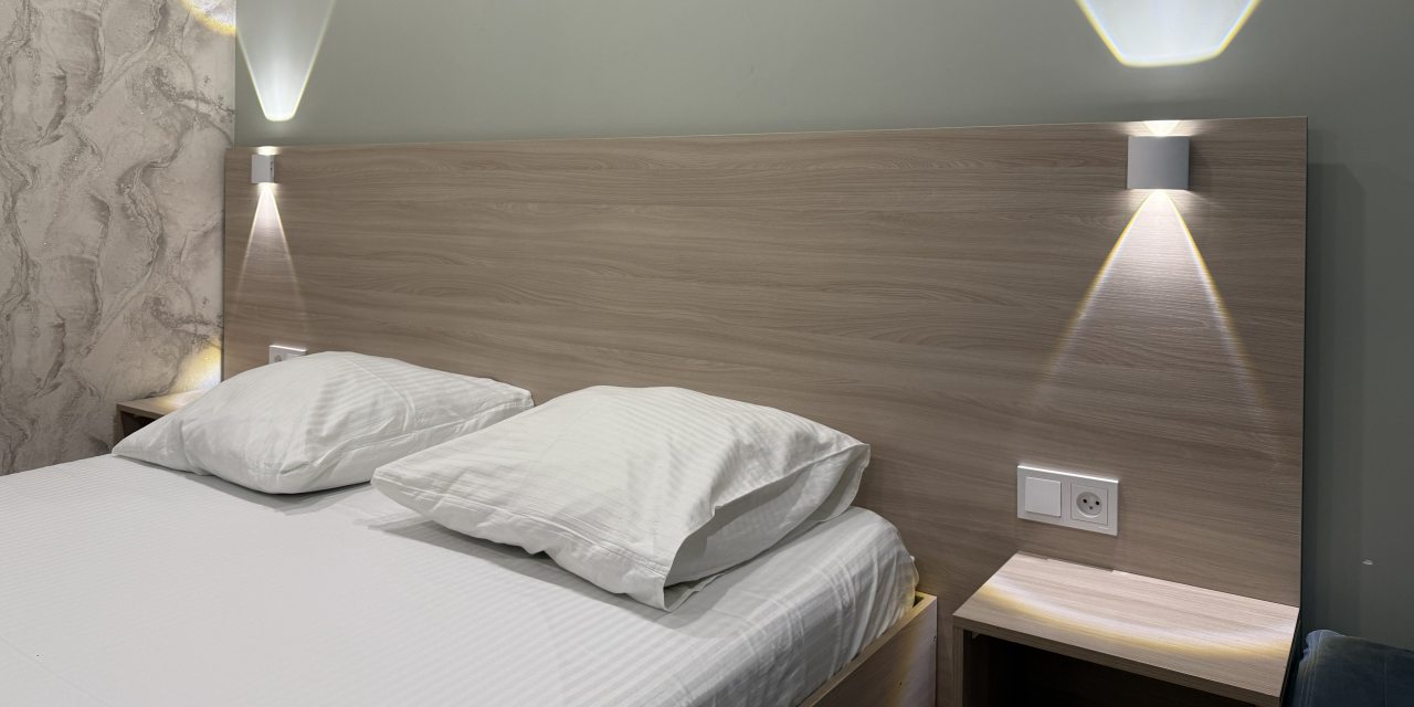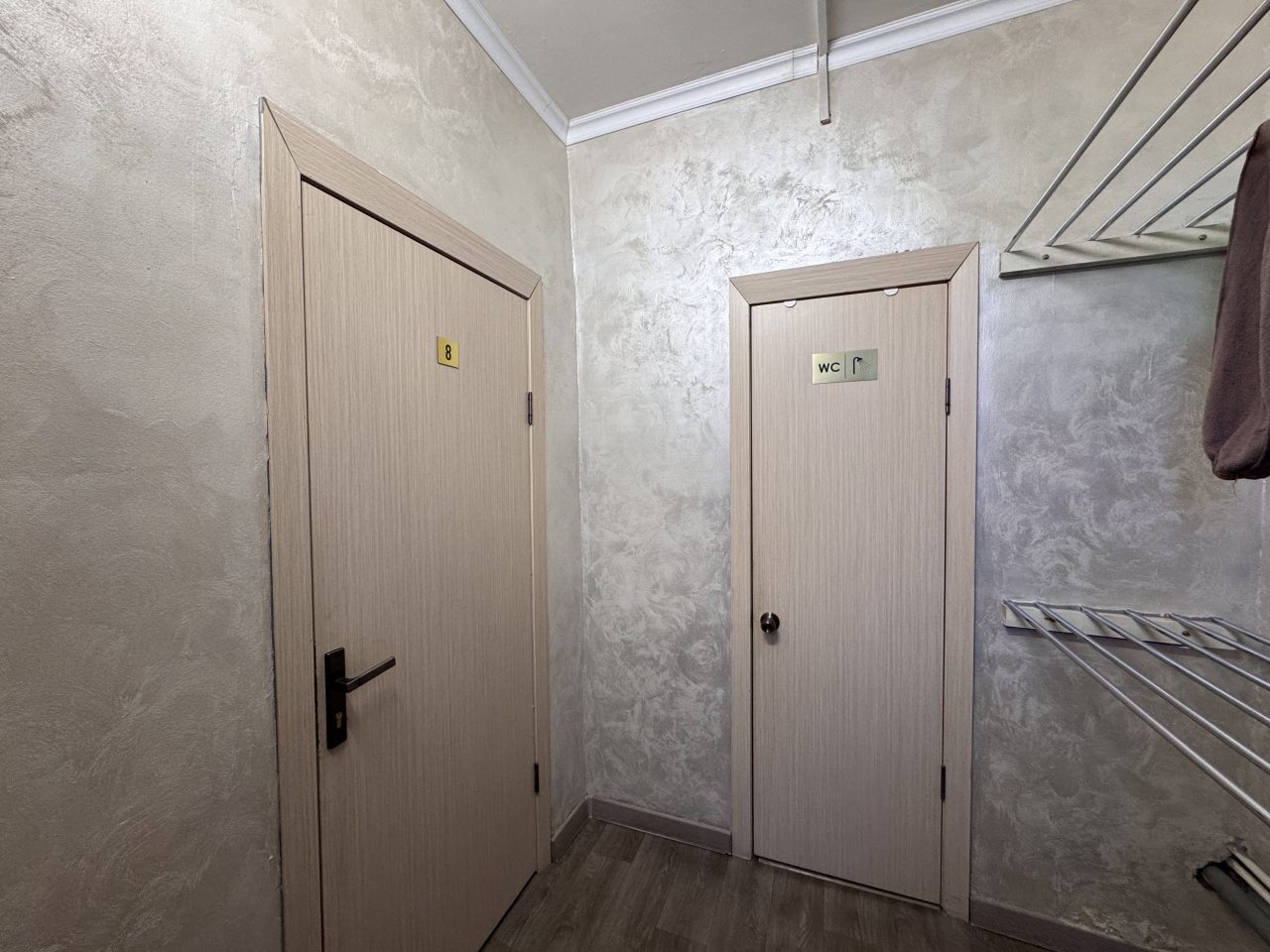 В наличии 12 номеров с евро-ремонтом в нежных тонах. В каждом из них есть стол для работы за компьютером, плоский телевизор и холодильник. В общей или собственной ванной комнате предусмотрена душевая кабина, каждому постояльцу выдается комплект полотенец.