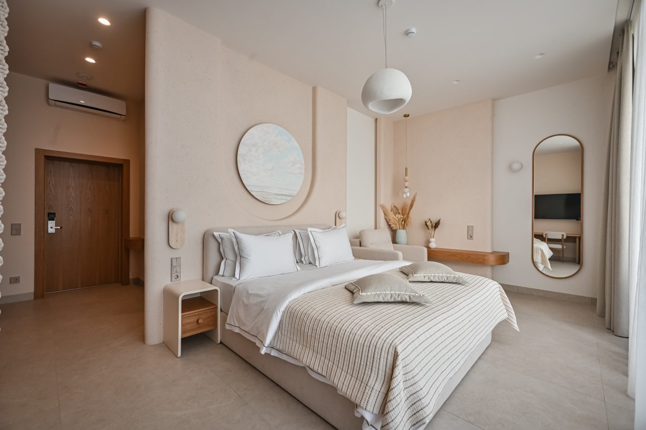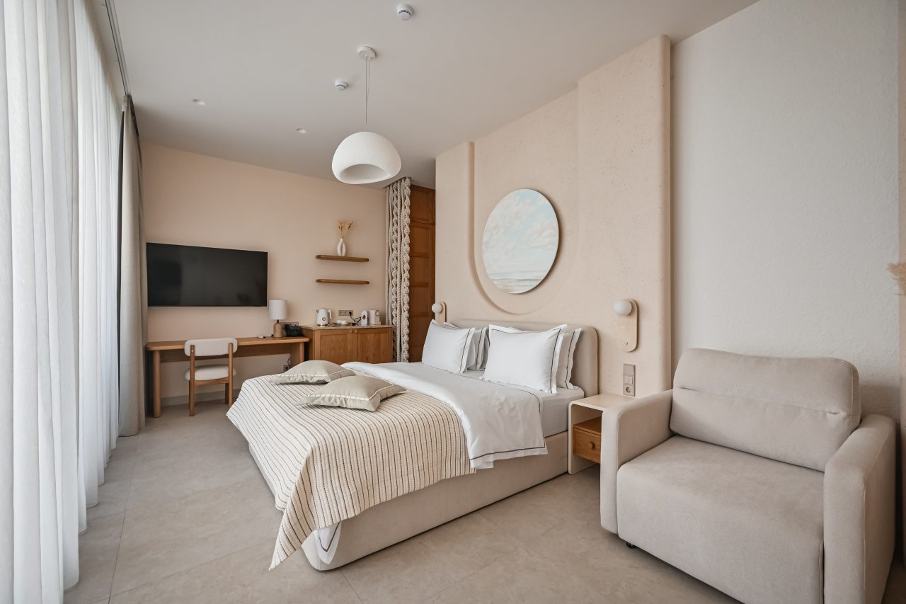 Внутри номера продумано всё для комфортного отдыха и проживания, включая большую и удобную кровать, телевизор, различные сценарии освещения, а также индивидуальный санузел с комплектом полотенец и гигиенических средств.