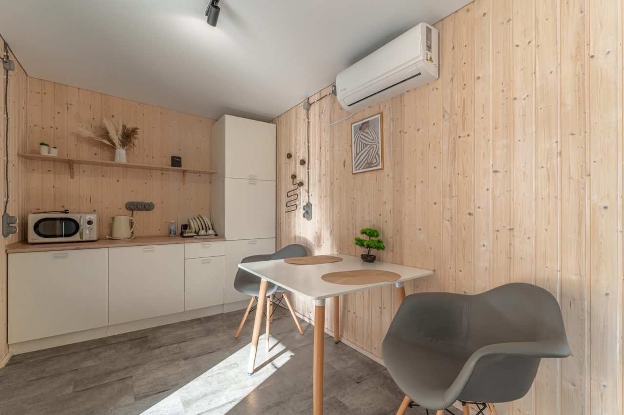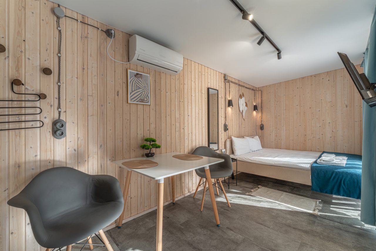 В апартаментах есть электрический чайник, холодильник. В шаговой доступности находятся кафе «Дача», «Песок», ресторан «Кактус».