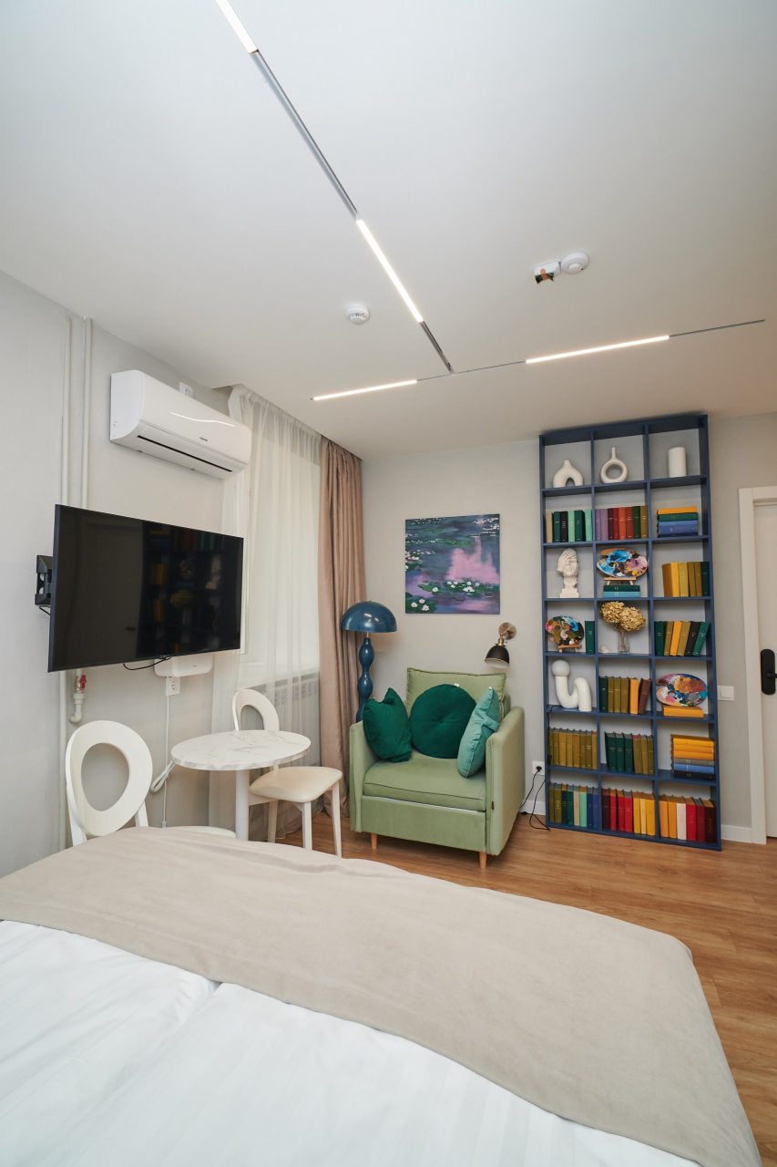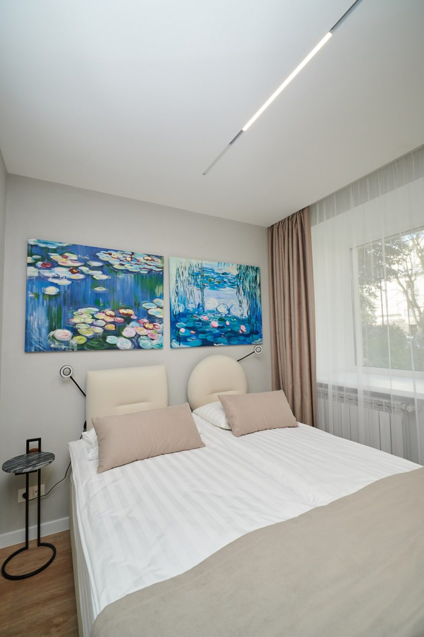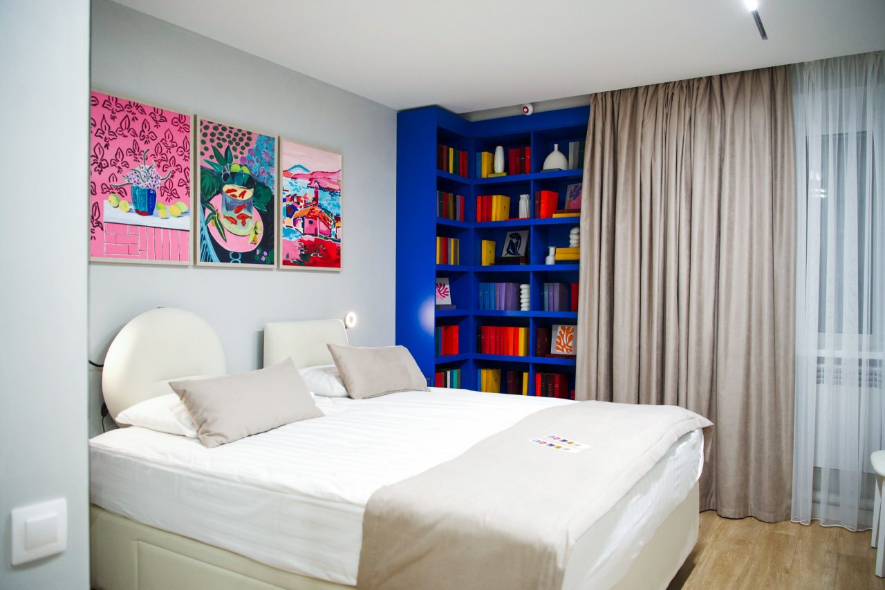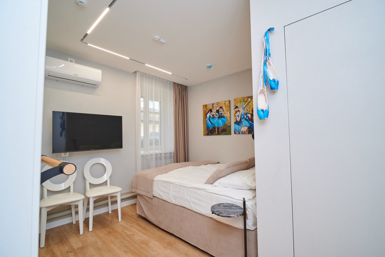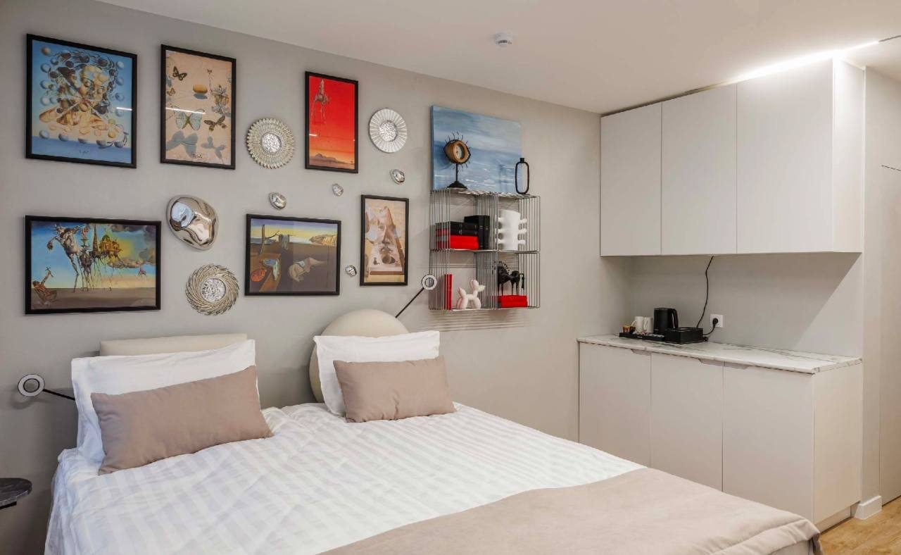 Все номера оснащены качественной мебелью и современной техникой, а интерьер выполнен в дизайнерском стиле. Каждый номер - это своя особенная атмосфера в духе великого художника. К услугам гостей: удобное спальное место, кондиционер, приточный очиститель воздуха, телевизор. В санузле имеется фен, полотенца и все необходимые средства гигиены.