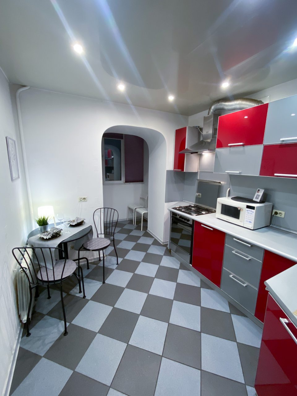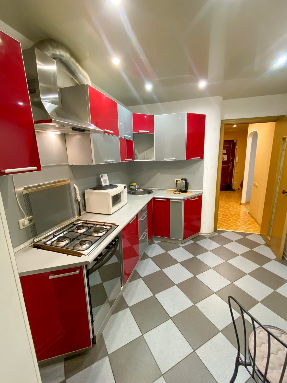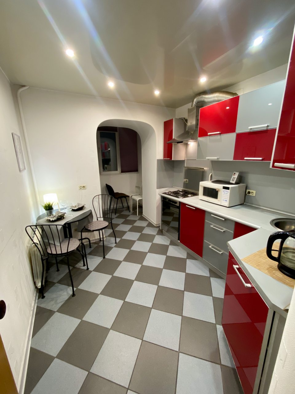 Кухня оснащена комплектом гарнитура, электрочайником, микроволновой печью, газовой плитой, холодильником, духовым шкафом. Вкусно пообедать можете в кафе «Лапша на ушах».