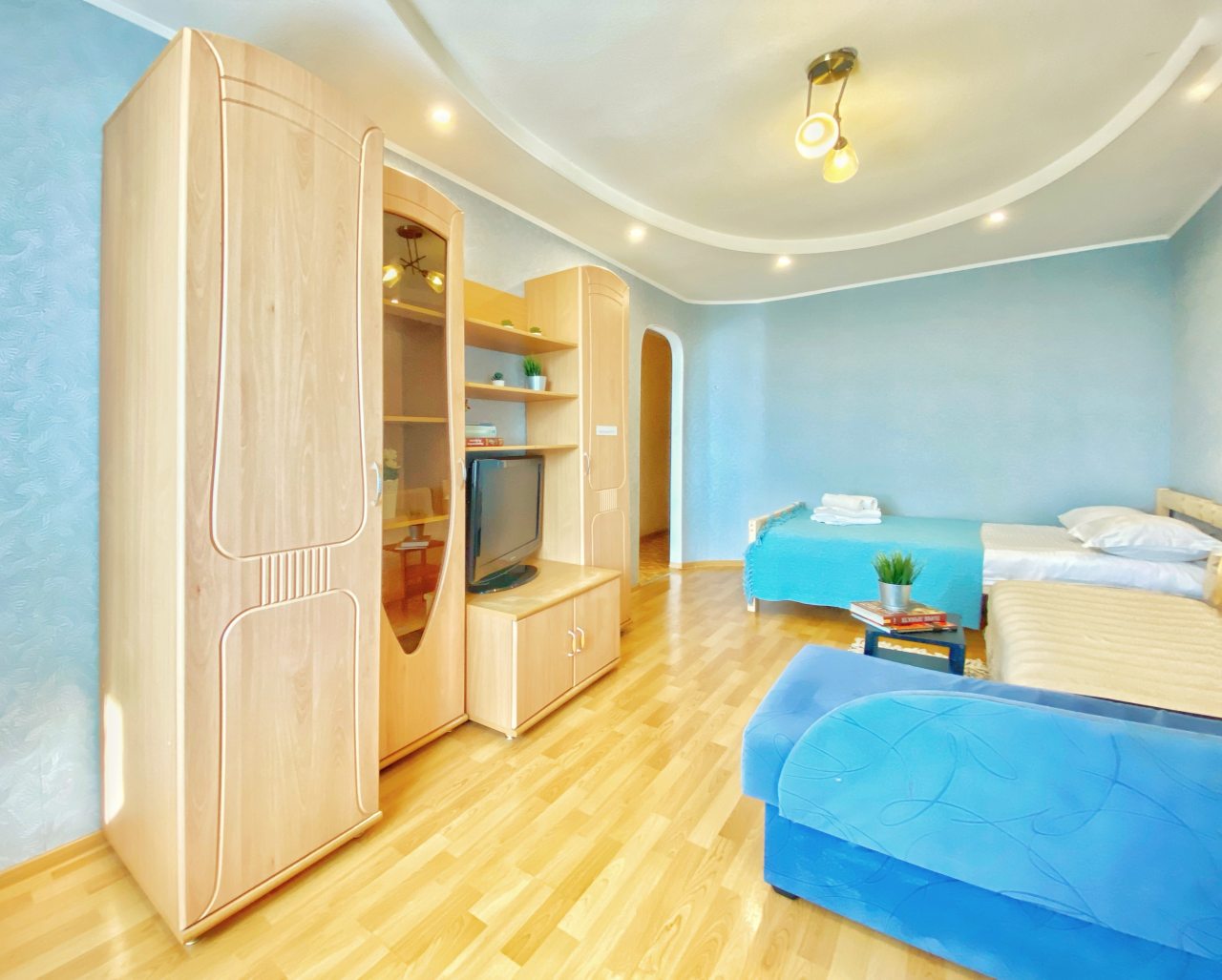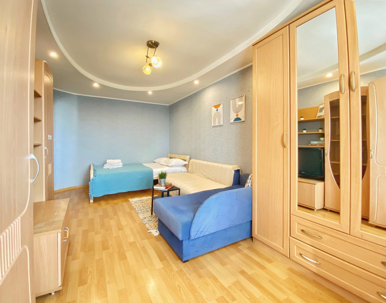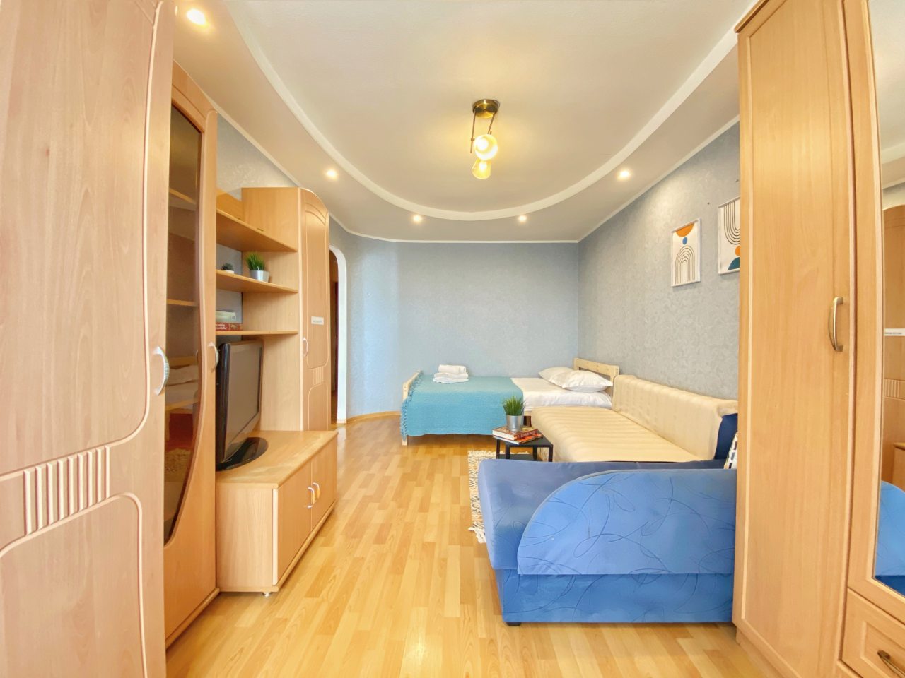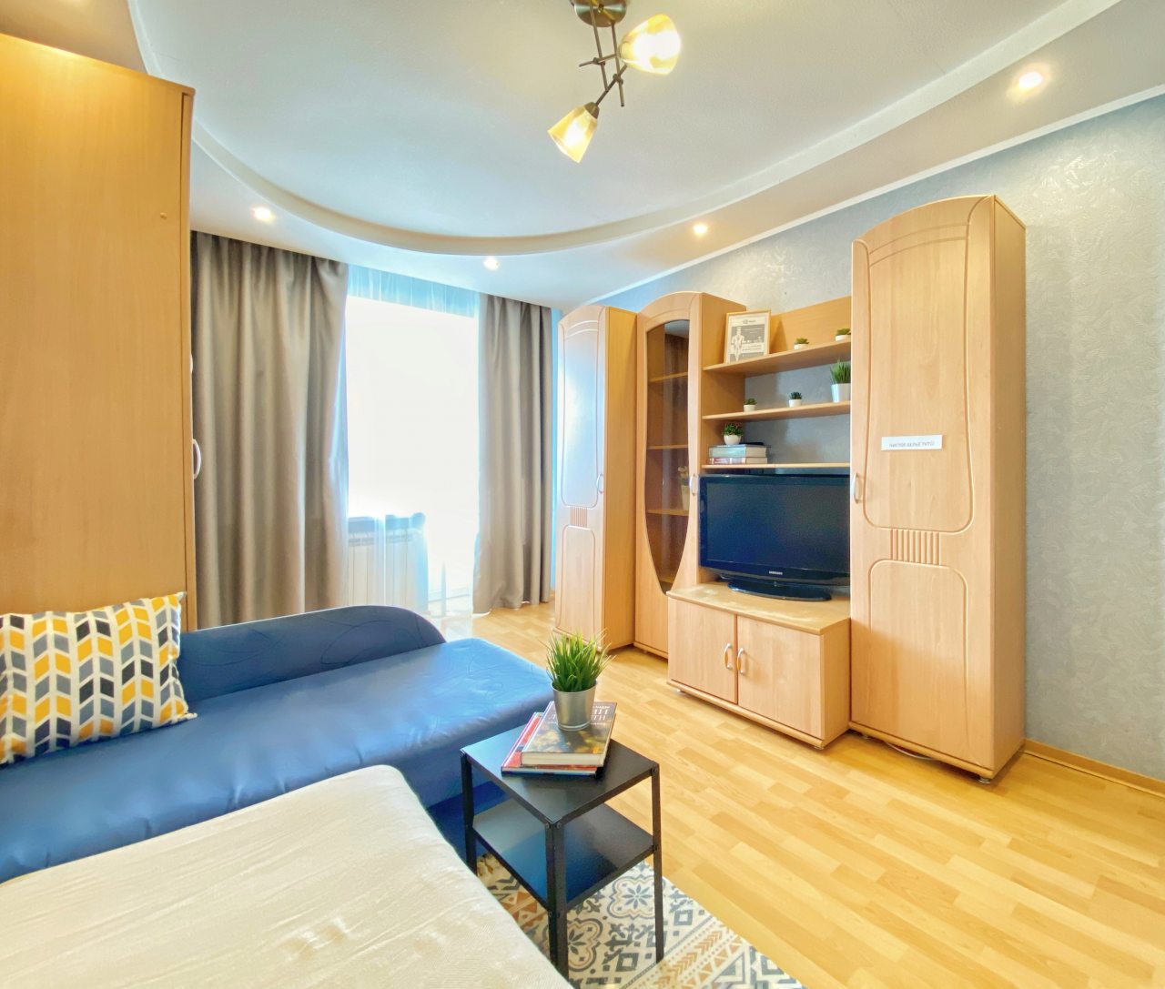Квартира укомплектована необходимой мебелью и техникой для комфортабельного проживания, например: удобными спальными местами, шкафом для хранения вещей, лоджией с видом на внутренний двор. Гостям доступна точка бесплатного высокоскоростного интернета и телевизор с кабельным телевидением. Санузел оборудован сантехникой, стиральной машиной, феном и косметическими средствами.