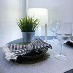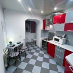 Кухня с ярким гарнитуром вдохновит вас на приготовление любимых напитков и блюд. В наличии плита с вытяжкой, СВЧ, духовой шкаф, чайник, посуда, уютная обеденная зона.