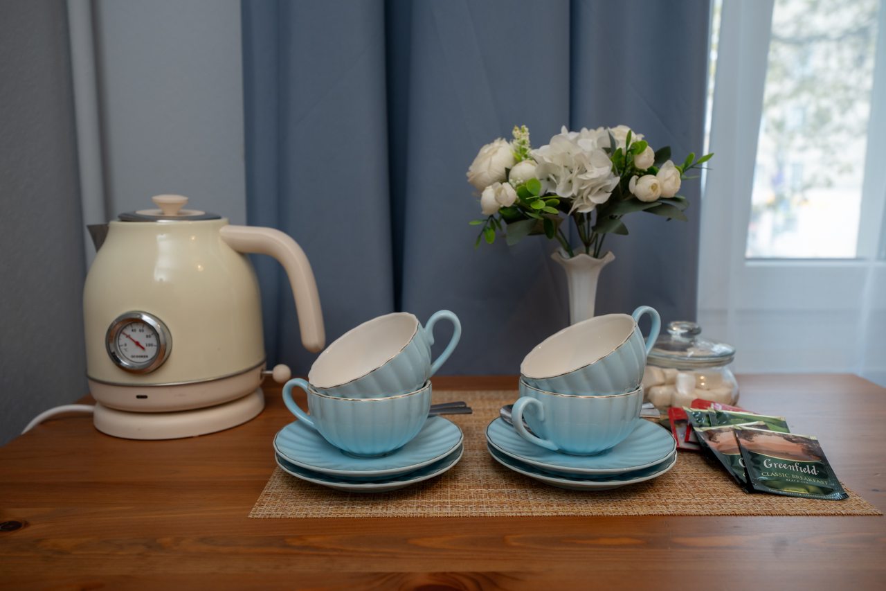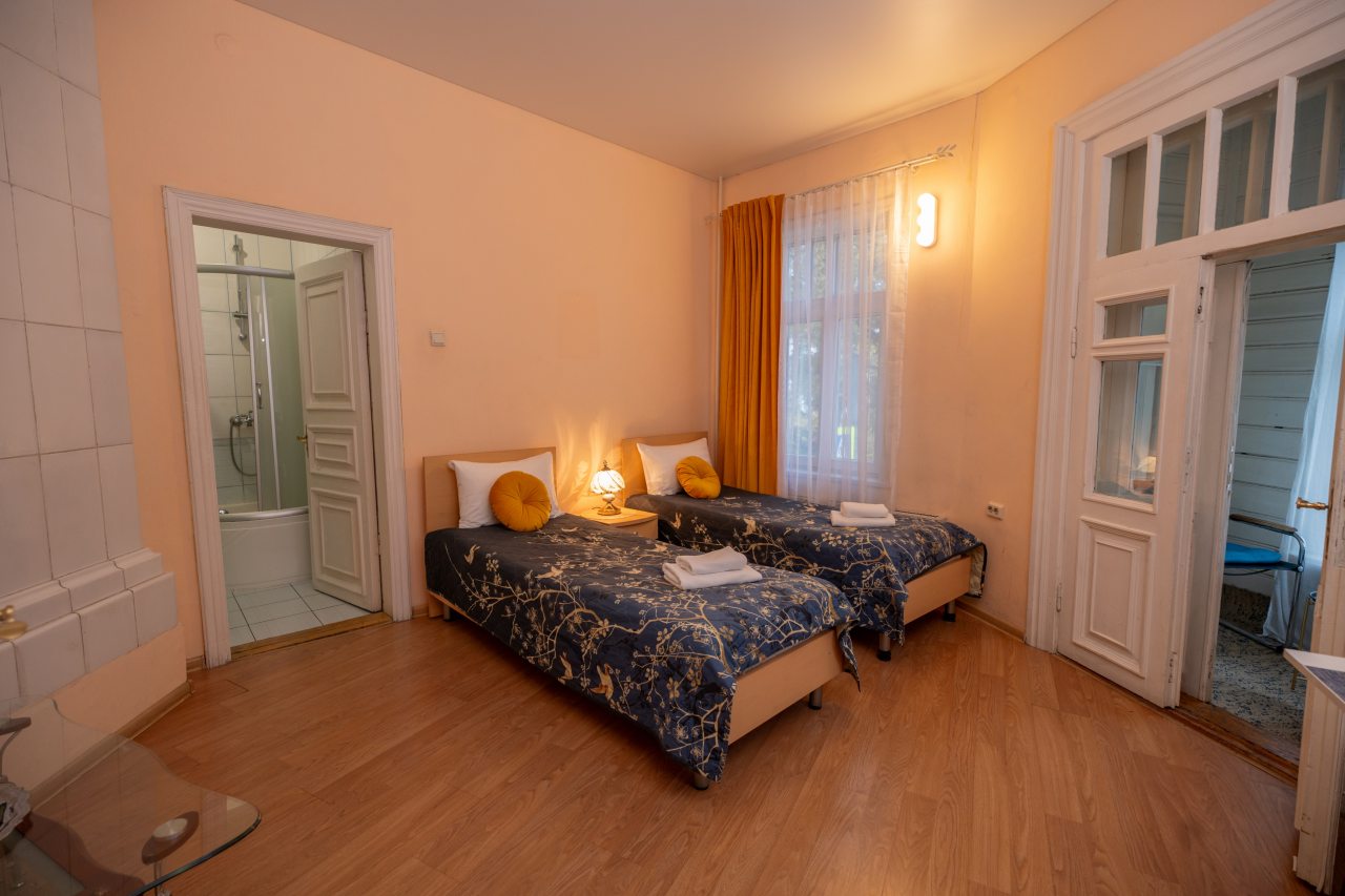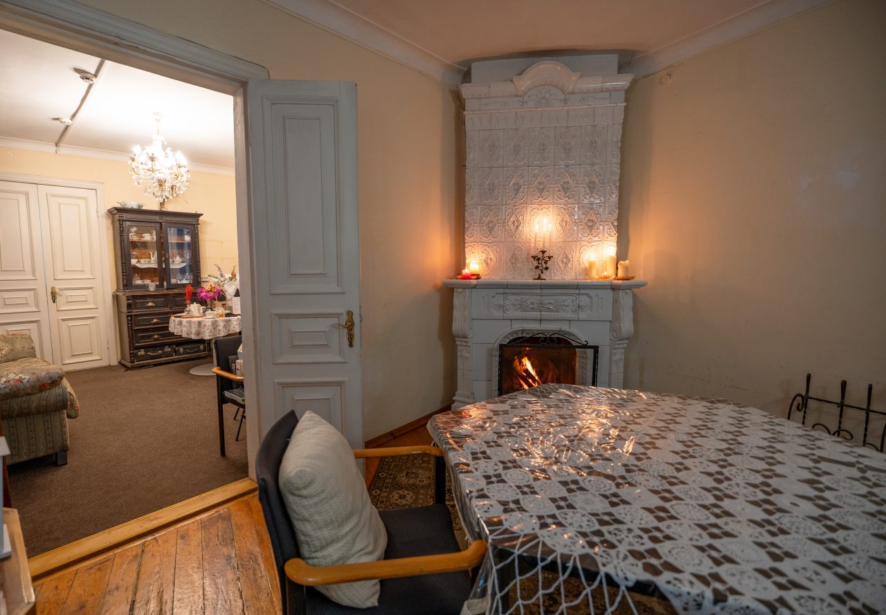 Есть парковка для путешествующих на автомобиле. У нас удобства были вне комнаты, но это неудобство не замечаешь. Очередей никаких не было. Предоставляют гель для душа и шампунь. В номере есть чайник, чай, сахар и печенье. По возможности можно попросить тарелки и приборы для перекуса. Завтрак проходил в гостиной на первом этаже рядом с камином и самоварами, за столом и стульями конца 19 века. На выбор предлагали блинчики с яйцом или яблоками на выбор и сырники. Мы выбрали блинчики с яблоками, было по домашнему вкусно.