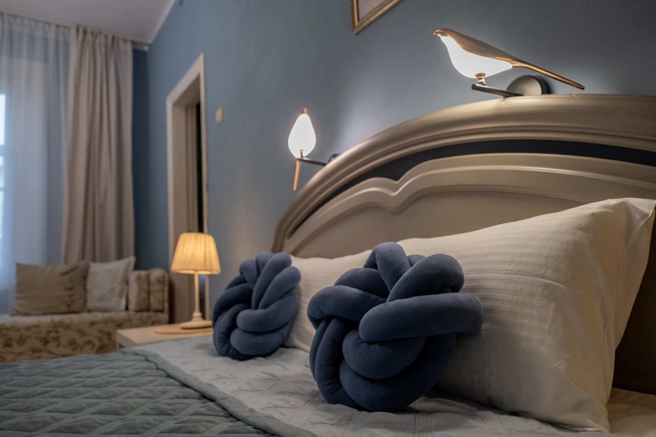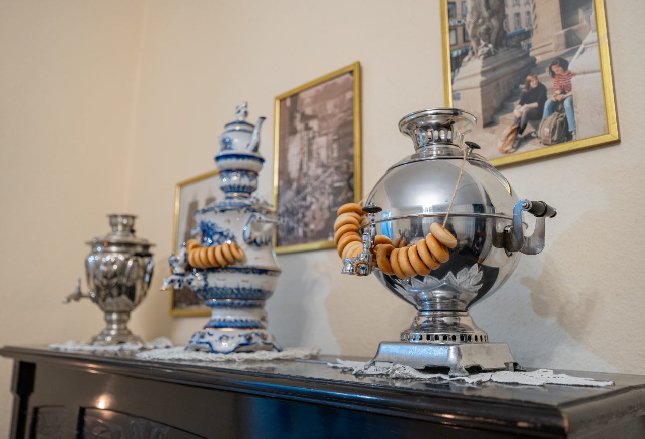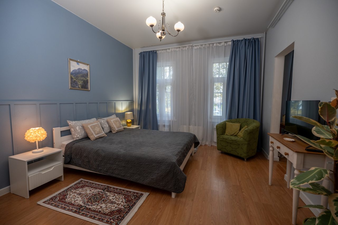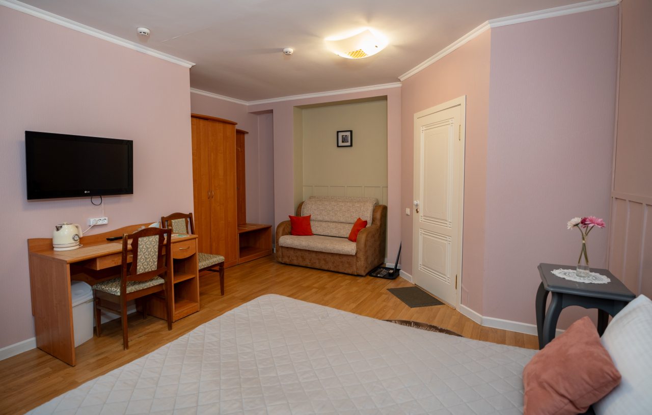 Здание гостиницы поражает своей красотой и изысканным стилем оформления. Высокие потолки, деревянные полы и оригинальные элементы декора создают неповторимую атмосферу русского дворянского особняка. Особое впечатление производит классический интерьер комнат, дополненный такими элементами, как камин, украшенный декоративной плиткой, и старинный рояль, гармонично вписывающийся в общую концепцию пространства.