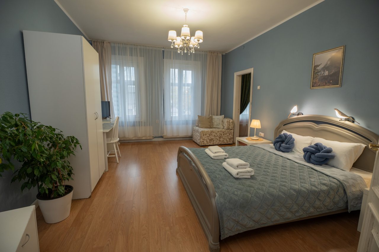 Номерной фонд включает в себя 8 удобных и комфортабельных для проживания номеров различной категории - от одноместного номера до двухкомнатного Люкса. В каждом из которых есть телевизор, место для хранения вещей, рабочий стол и стулья. Благодаря камину, в холодное время года можно окунуться в уютную обстановку и погреться, сидя прямо перед ним. Из окон открывается красивый вид.