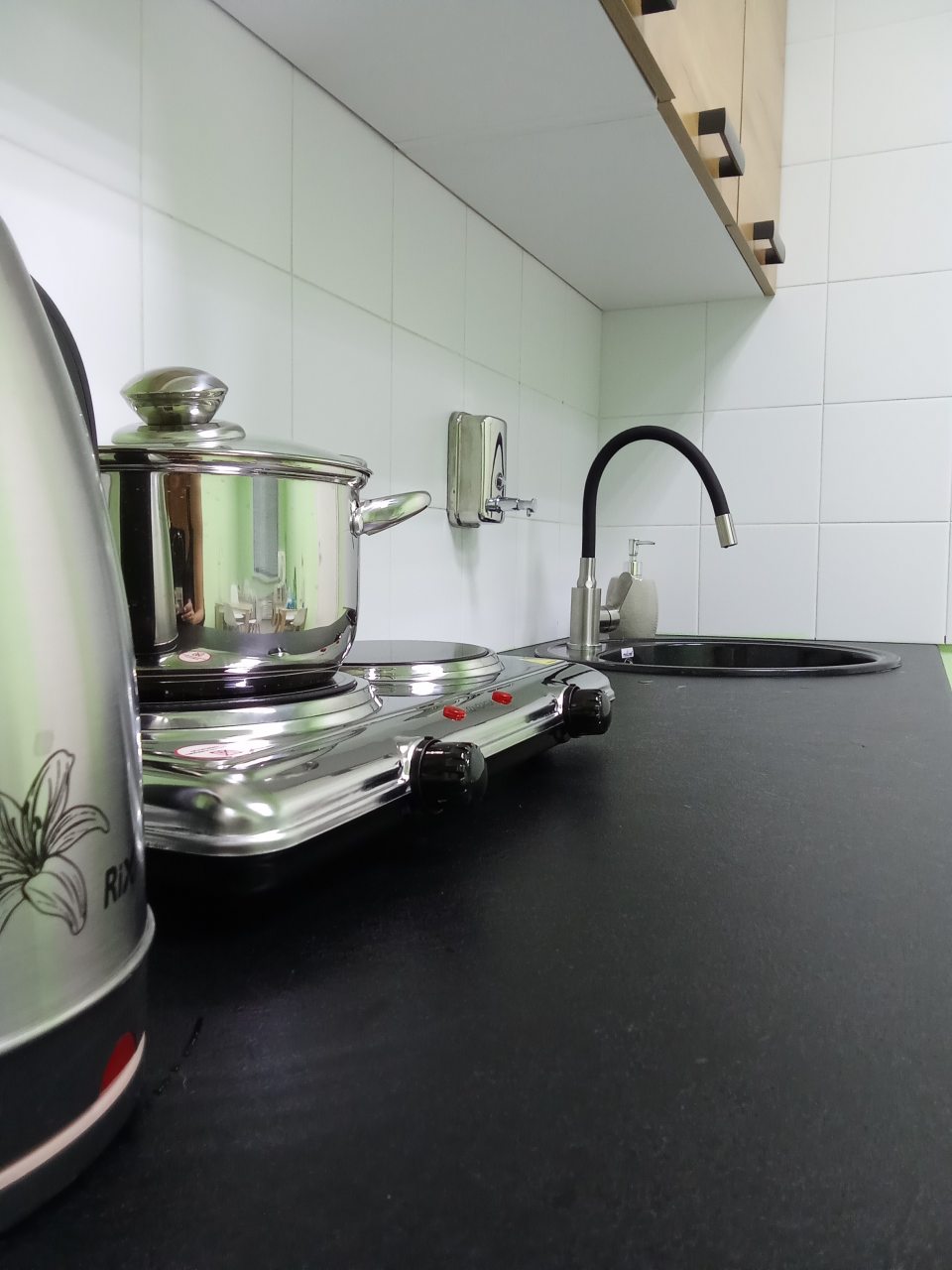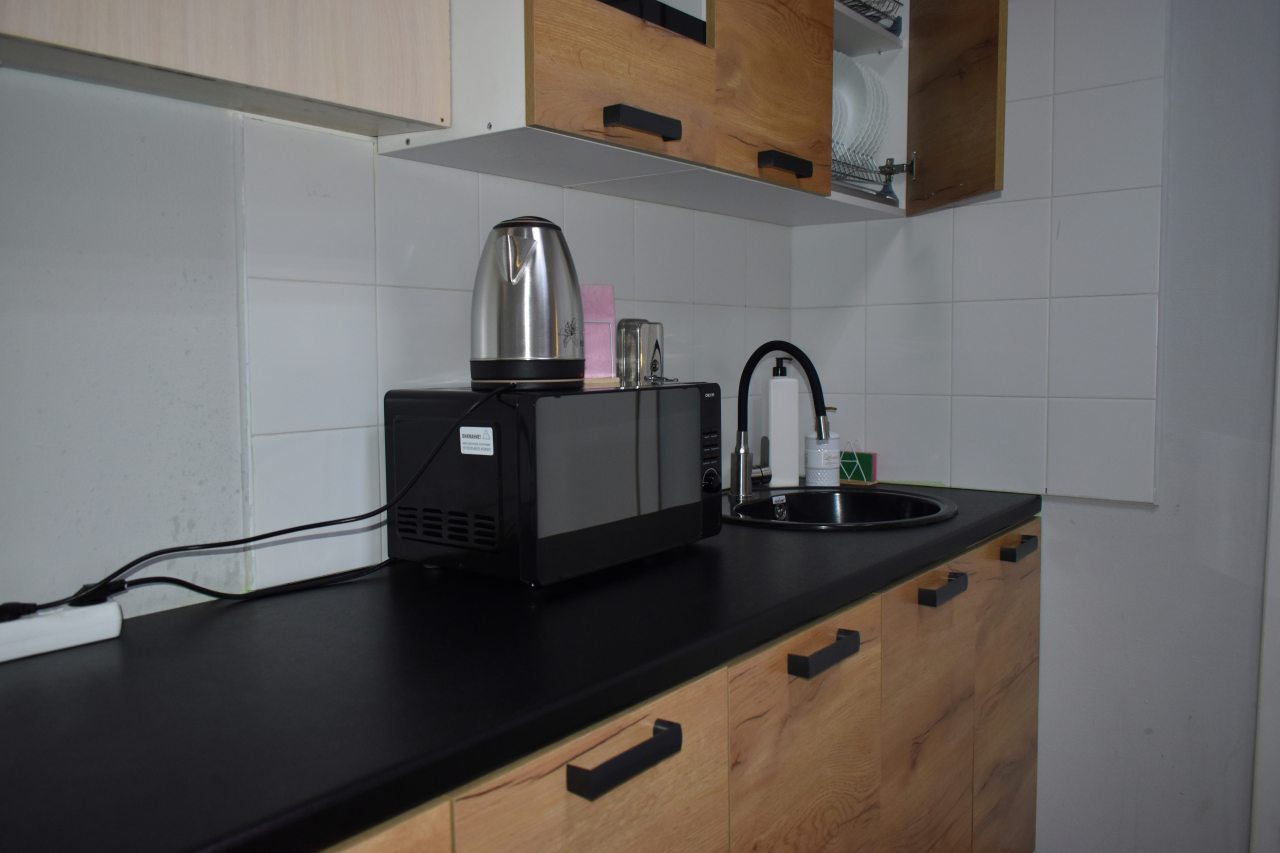На этаже находится общая оборудованная кухня для приготовления пищи. Рядом с хостелом находятся магазины, ресторан, кафе.