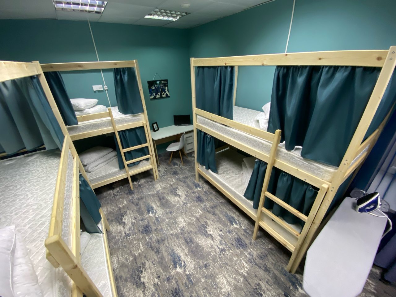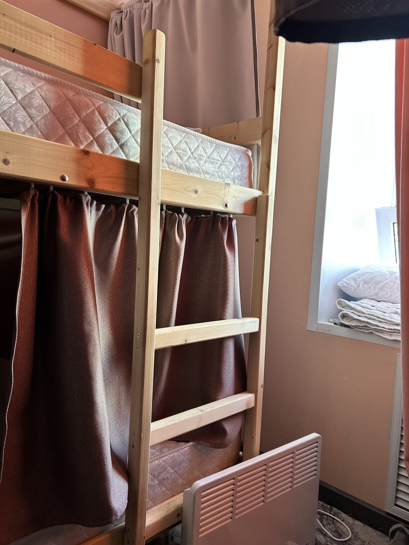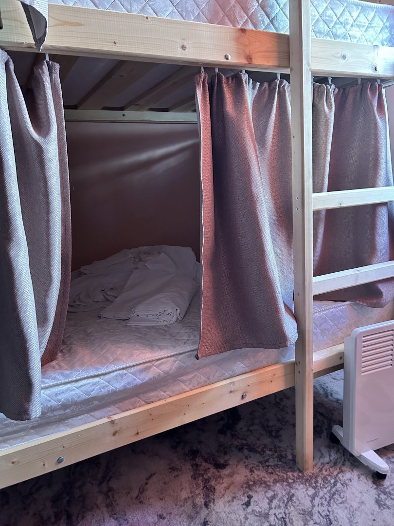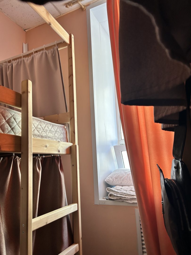 Удобное расположение, хостел находится рядом с центром. чистота, приветливые администраторы. Душ и кухня есть. В комнатах стоят двуспальные кровати. У каждого есть возможность уединиться и не видеть соседей: шторочки позволяют это сделать.
