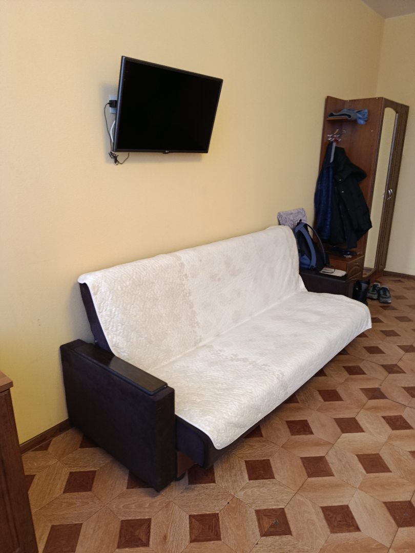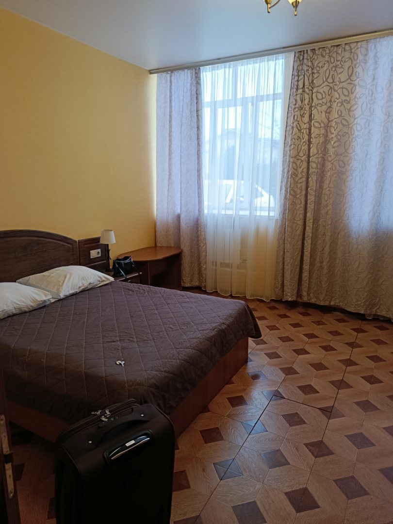По приезду в гостиницу на ресепшене нас встретил доброжелательный персонал, всё рассказали, объяснили (мы в этой гостинице первый раз). Очень удобно,что на территории есть несколько ресторанов, никуда идти далеко не надо,чтобы покушать. Мы снимали номер на троих, номер просторный, уютный, есть всё необходимое для проживания. Большая ванная комната и туалет, все принадлежности для принятия душа,есть. В комнате есть телевизор, большая кровать и диван кровать, шкаф стол и т.д. В номере большие окна, поэтому было светло, и хотя наш номер был на первом этаже, нам было комфортно. В номере чистота и ничего лишнего. Рядом с нашим корпусом есть достаточное место для парковки автомобиля, что важно для туристов,путешествующих на автомобиле. В общем, впечатления от гостиницы, положительные